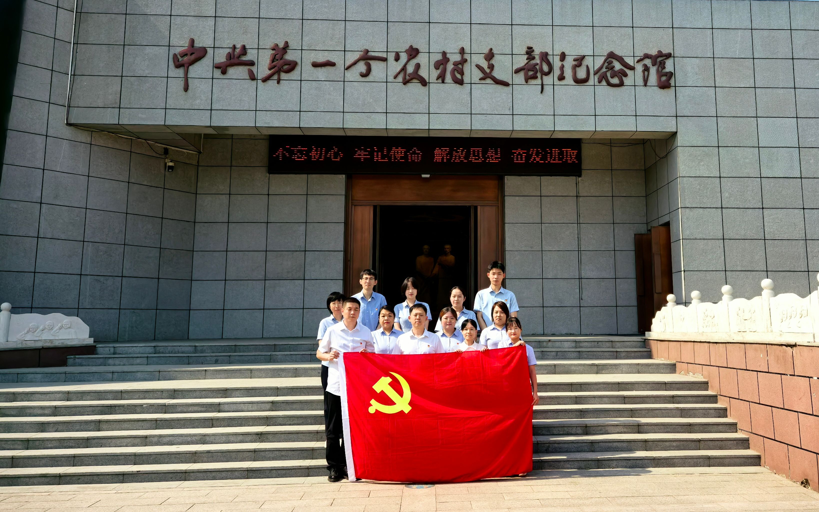 为庆祝中国共产党成立104周年,6月30日,邮储银行安平县支行党支部组织全体党员赴安平县台城村的中共第一个农村支部纪念馆,开展弘扬“两个第一”精神主题党日活动。