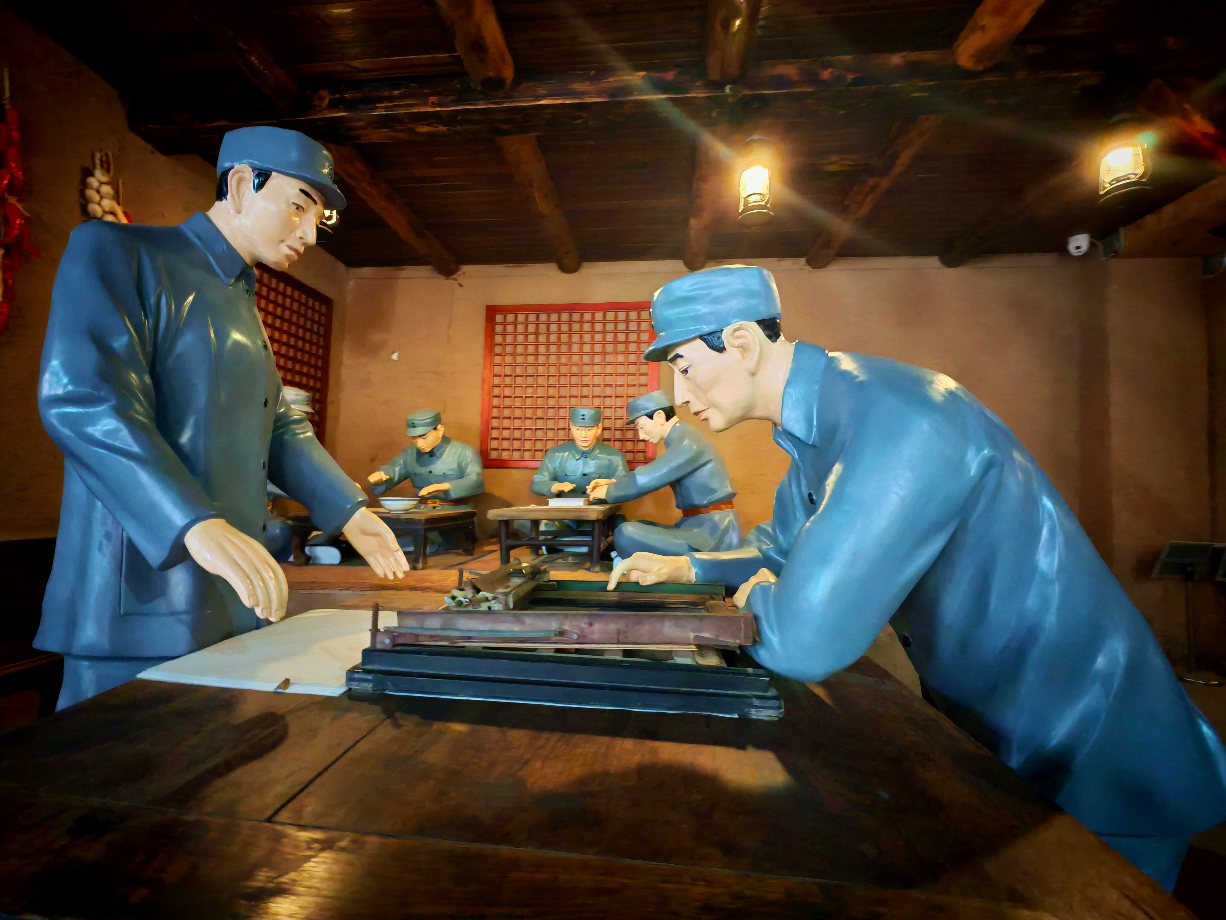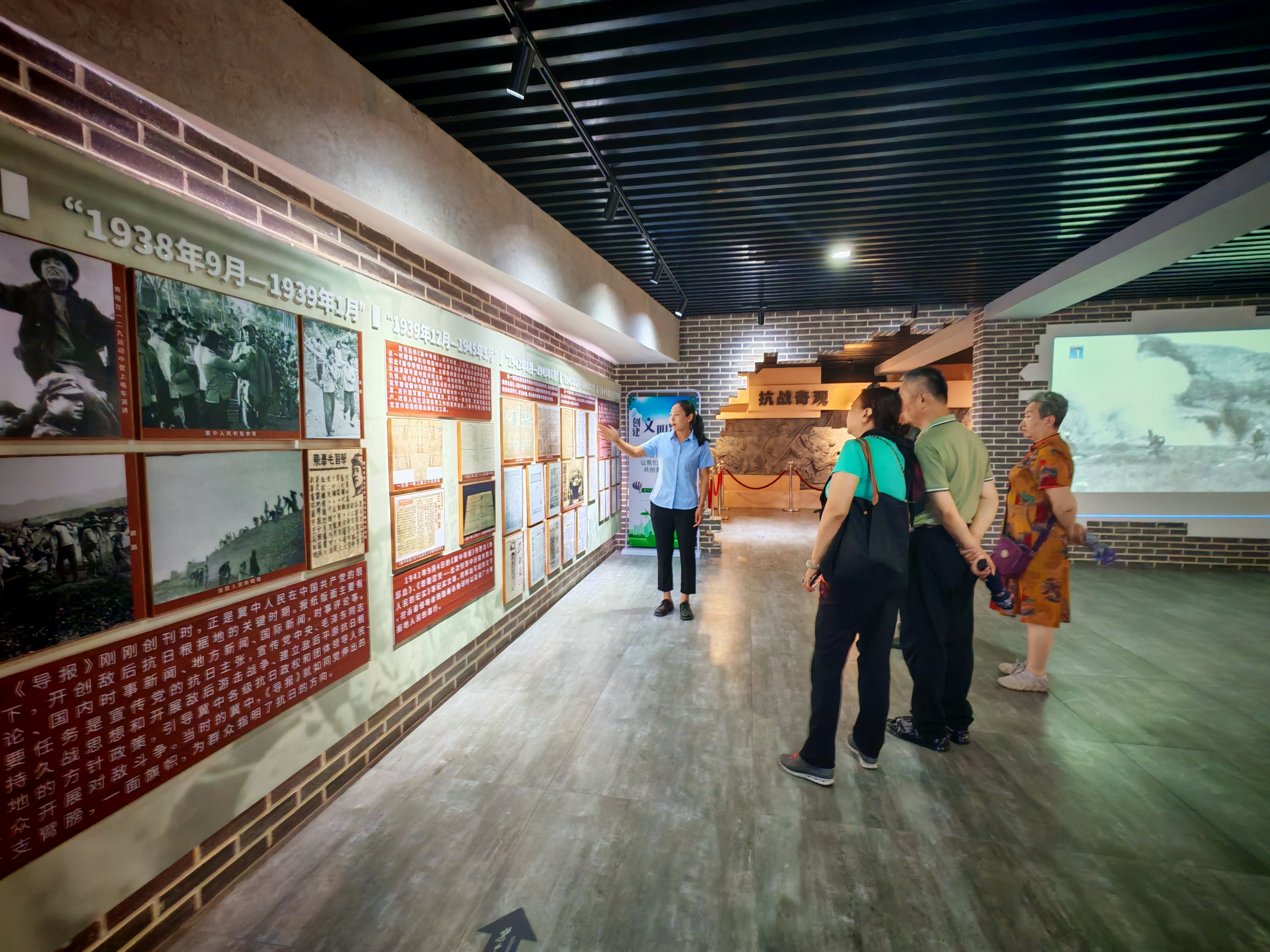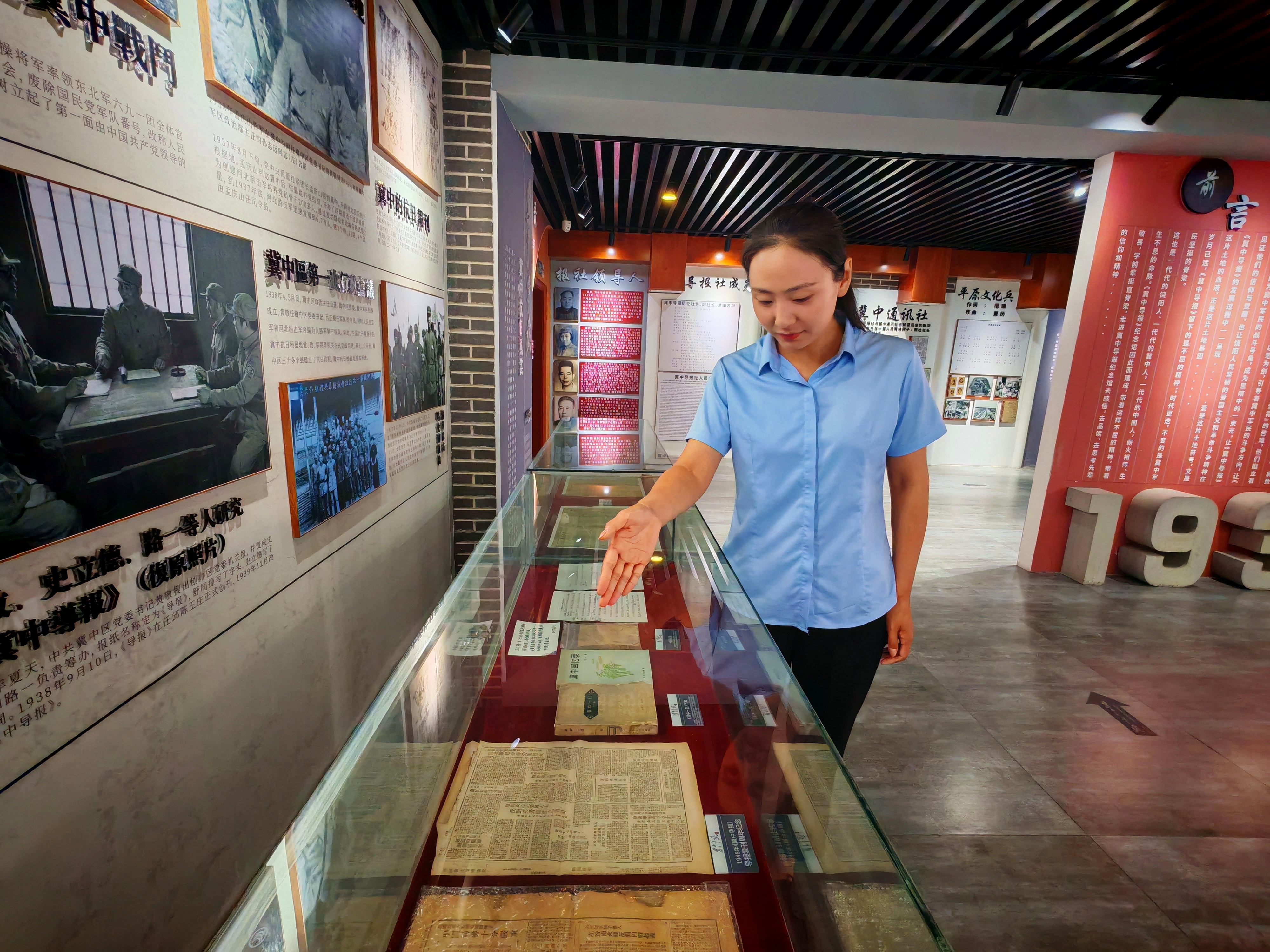 在史料翔实、场景丰富的展厅中,场景复原的“炕头编辑部”格外醒目。土炕上摆着老式油灯和轻便铅印机,冀中导报社的工作人员们正紧锣密鼓地印制《冀中导报》。“当时,《冀中导报》能在敌后坚持出版发行,离不开群众的掩护和支持,报社的编辑部就在老乡的炕头上、地洞里。” 讲解员介绍,饶阳群众自愿担起站岗放哨的任务,紧急情况下,甚至不惜牺牲自己和家人的性命来掩护报社。
