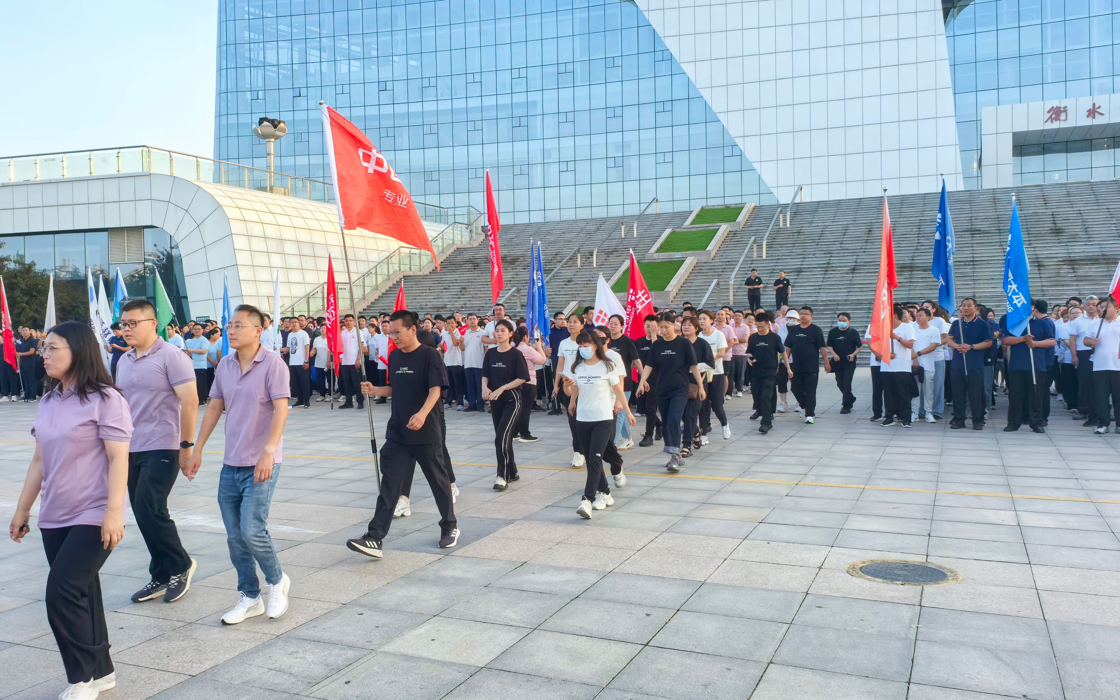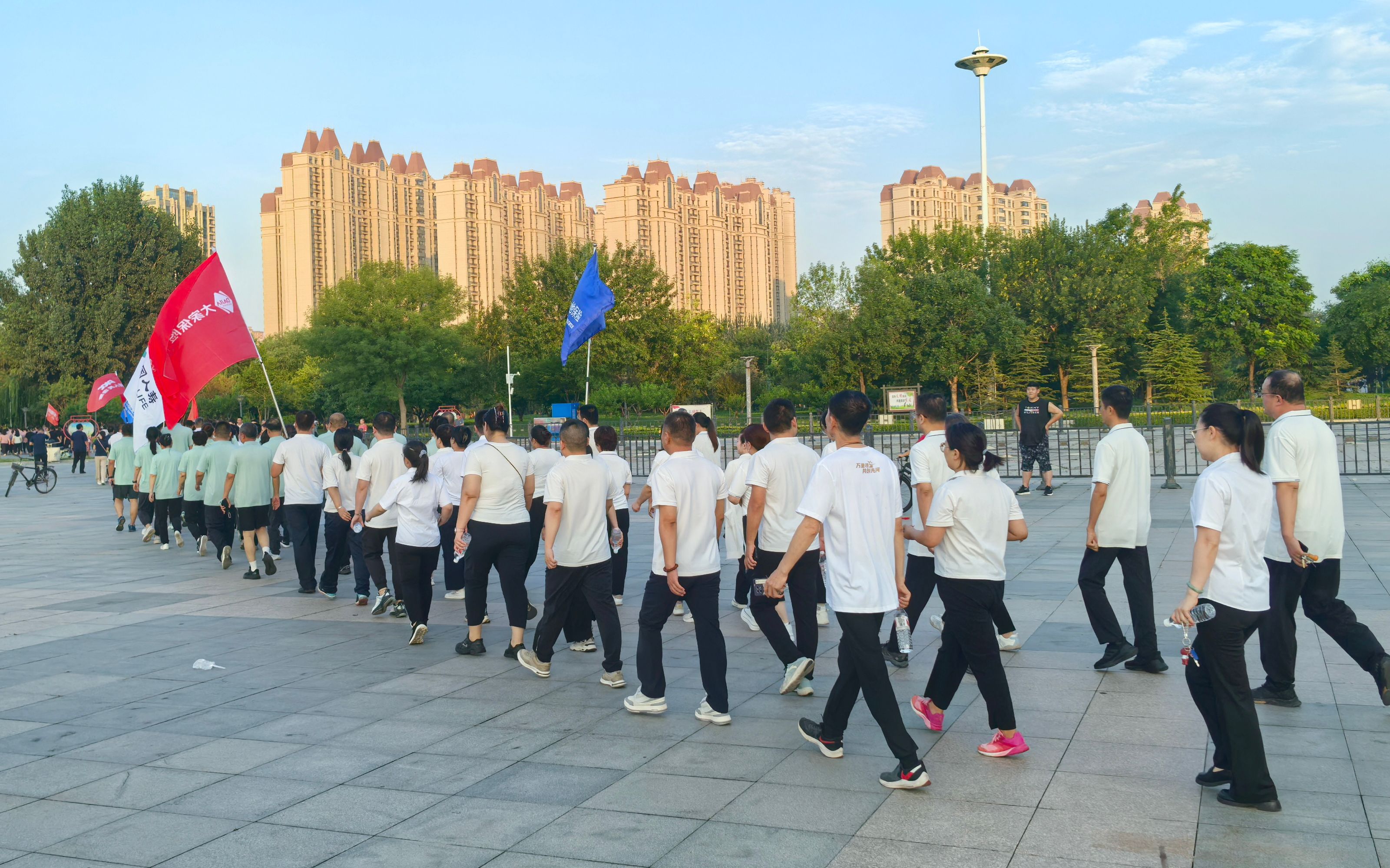 当日清晨5点30分,滏阳河畔的衡水市保利大剧院正门台阶处已是人声鼎沸,来自协会及44家保险公司的700余名员工身着统一服装,整齐列队,准备踏上这场意义非凡的健步之旅。