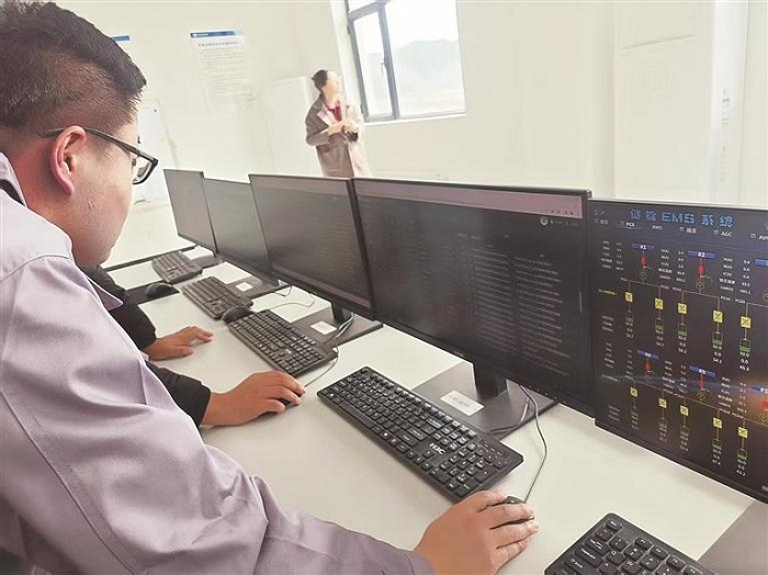 平泉茅兰沟乡河北交投海棠河风电场的主控室里,50台风电机组的三维动态虚拟模型在显示器上实时跃动。海棠河风电场场长张国庆介绍:“主控室就是电场的智能控制系统所在,包括风功率预测、发电单元风机和储能监控、五防监控、综自、AVC(自动电压控制)和 AGC(自动发电控制)、视频监控等系统。” 他轻点几下鼠标,他指着显示黄色数据的10号风机:“这台风机机舱与风向偏离过大,最直接的结果就是风机停转、造成发电量的损失。尽管在20公里以外,但现场的智能传感器如同神经末梢,会做出思考、判断和决策,在15秒内就能触发自动控制程序PLC,发出偏航指令自动纠偏,把山风‘驯服’成绿电。”风电场一般地处偏远、环境恶劣,再遇到暴风雨雪等天气,还有场站内高压设备的运维,常规的人工巡检,存在着各种安全风险隐患。从被动的运维到主动防控,“聪明”的控制系统能实时监测异常、报警,通过数据分析定位、诊断、自动调整,还有无人机的助力,全面实现了产能、节能和安全运维的同步体现。