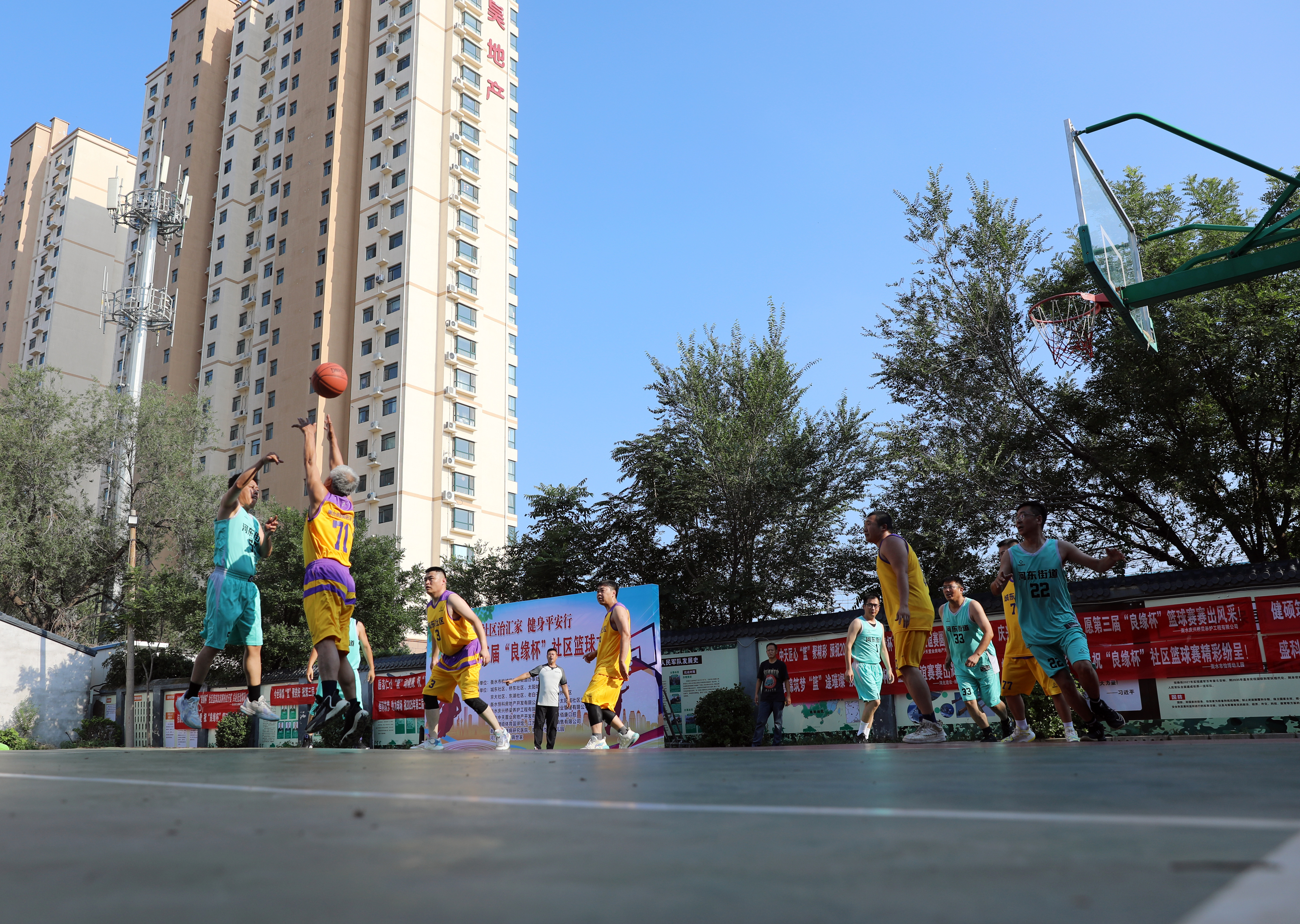 搭建竞技平台,凝聚社区活力。7月4日,桃城区河东街道第三届“良缘杯”社区篮球友谊赛在城东社区篮球场拉开战幕,9支辖区球队同台竞技,以篮球之名增进邻里情谊,助力和谐社区建设。