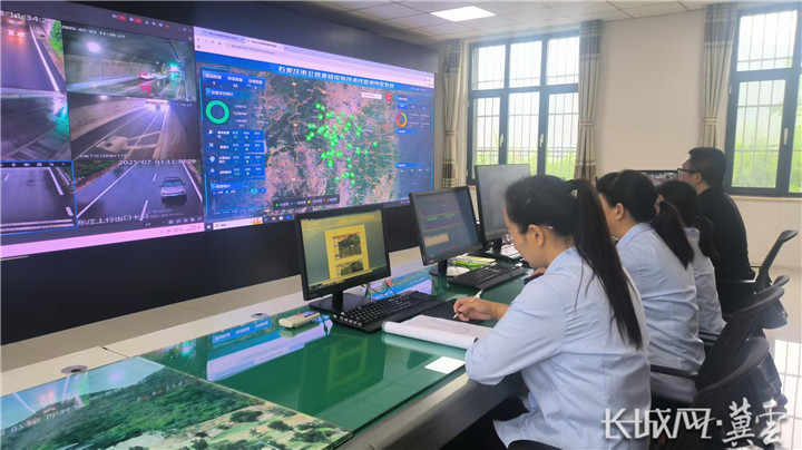 随后,记者来到石家庄市公路基础设施技术性监测预警系统的监控中心,看到大屏幕上一个个监控画面实时显示着各点位的运行情况。