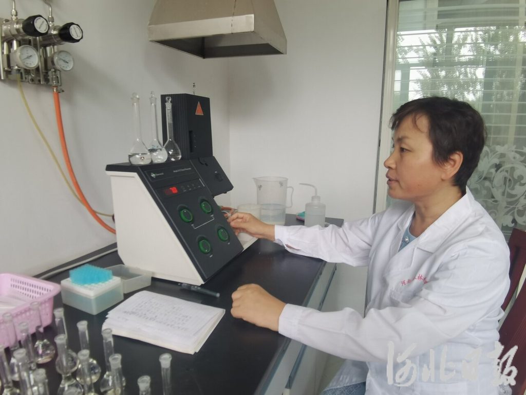6月25日,省农林科学院农业资源环境研究所研究员王丽英通过实验测定蔬菜作物中钾含量。河北日报记者李冬云摄