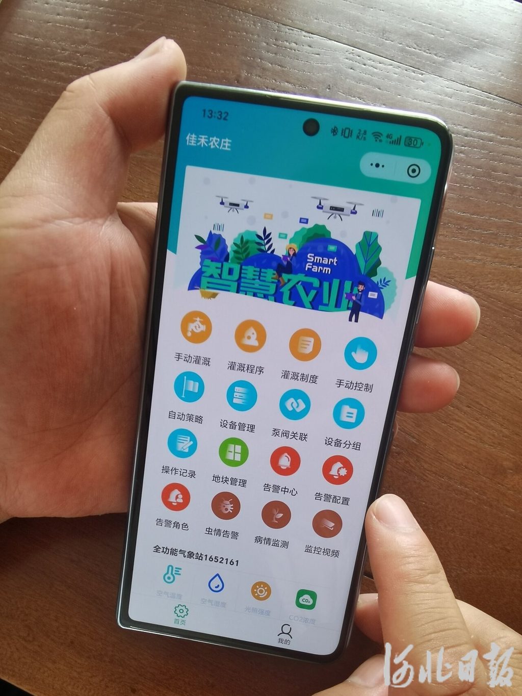 河北水润佳禾农业集团股份有限公司开发的数字农业管理平台,管理员可以通过该平台进行气象、土壤等数据监测,并对农作物进行水肥管控。(摄于2025年6月23日)河北日报记者李冬云摄