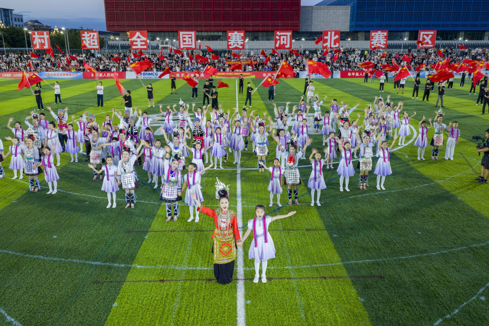 开幕式上,“村超”球队方阵、抗日模范根据地方阵、乡村振兴展示方阵接连亮相,集中展示了阜平县的红色文化、特色民俗文化等。马兰花儿童声合唱团联合侗族大歌团队联唱《我和我的祖国》等曲目。