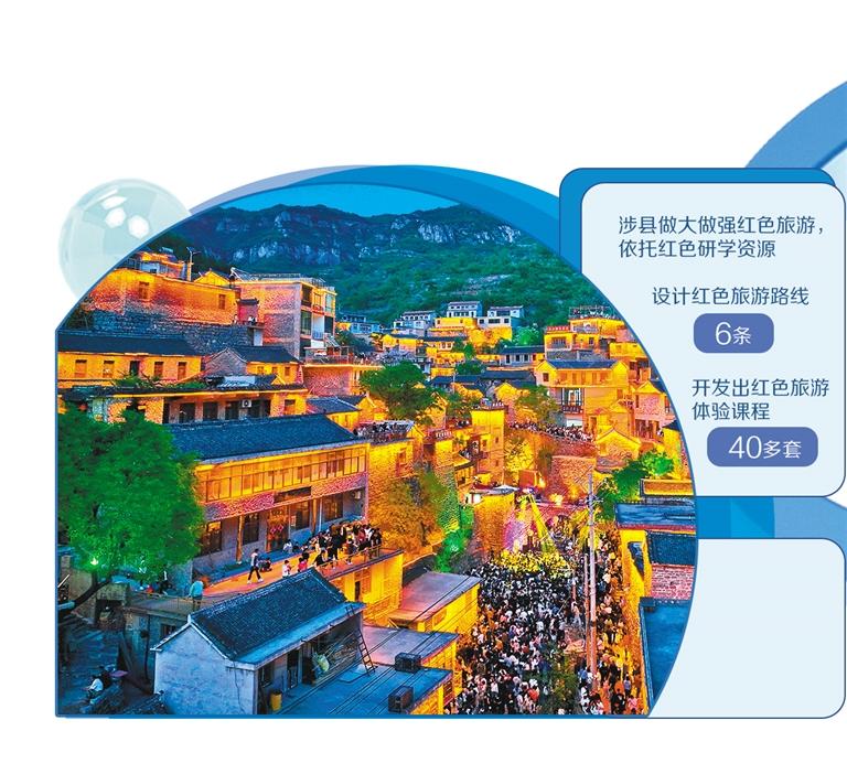 涉县红色资源丰富,抗日战争时期,八路军一二九师将士鏖战太行,在涉县驻扎6年之久。该县做大做强红色旅游“金字招牌”,依托八路军一二九师司令部旧址、红色记忆小镇、涉县少年军校等红色研学资源,设计6条红色旅游路线,开发出40多套形式多样、内容丰富的红色旅游体验课程,既有挑水、推碾子、投弹、推独轮车等互动性、参与性极强的红色游戏,又有内容丰富、形式多样的文艺节目。“红色研学游改变了景区传统我讲你听模式,通过挑水、推碾子、投弹等体验类课程和重温红色经典,让青少年在实践中感受红色文化的魅力。”涉县八路军一二九师纪念馆副馆长王翔翥说。