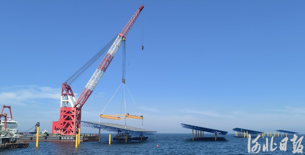 近日,在秦皇岛市昌黎县海域,随着一块海上光伏板与网架平台焊接完成,我省首个海上光伏项目——秦皇岛市1800兆瓦海上光伏示范试点项目进入大规模施工阶段。