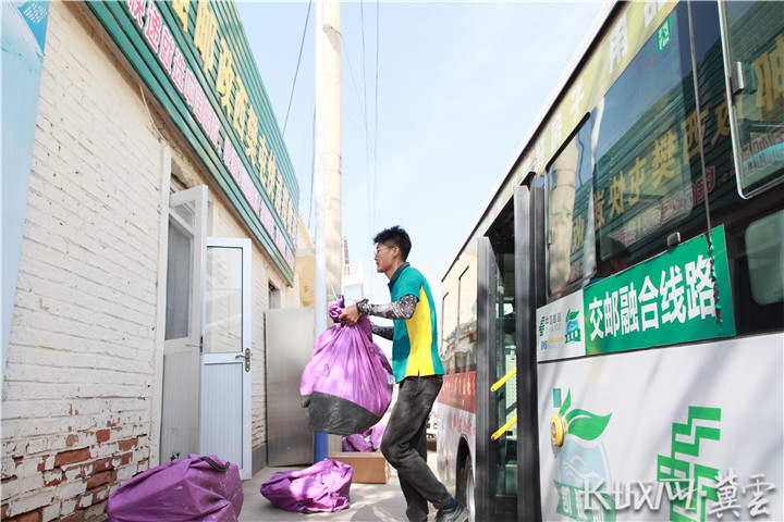 “这两包是汽保工具,拉到县共配中心。”记者乘坐一辆交邮融合线路公交车来到终点站西樊屯村,驿站的工作人员跨步上车,精准将公交车上的快递搬下车,又把当天需要寄出的包裹放在车上的邮件存放处,下车时向司机交代道。