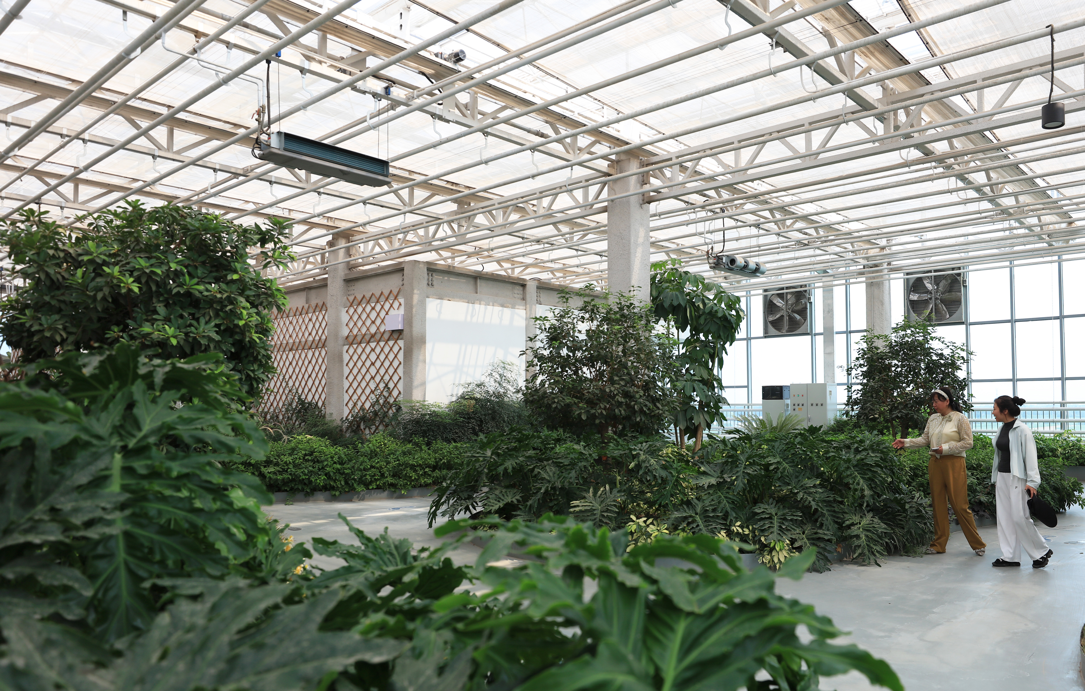 走进园区的农场温室、自然温室、雨林温室等内部设施配置、种植作物各具特色。在雨林温室,热带植物长势旺盛,一片生机勃勃之景。园区培育温床独特,靠可控管道系统提供营养,产量较传统种植大幅提升,日产成果可观,且种植到采摘实现物联网大数据全覆盖。