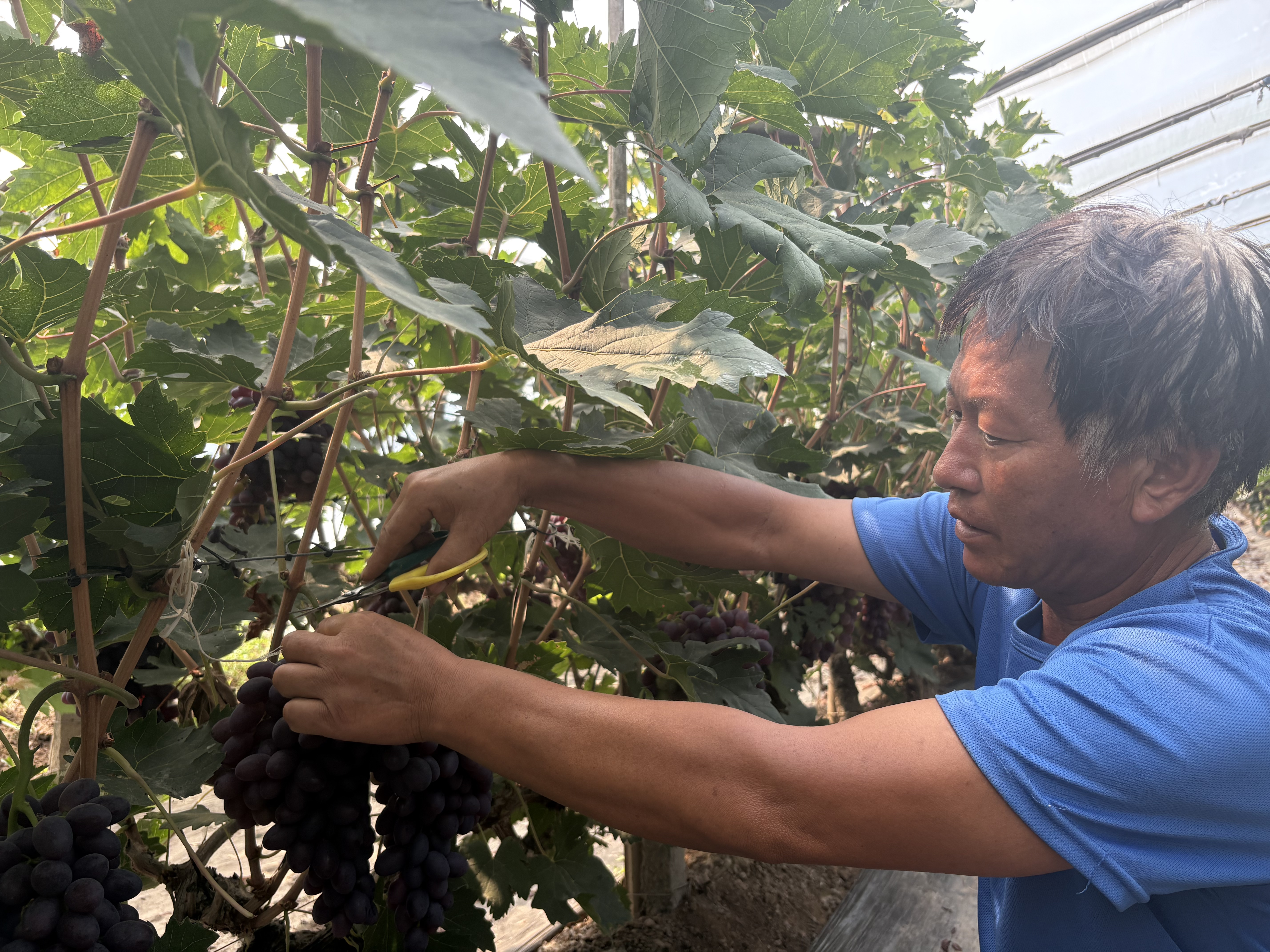 该合作社成立于2014年,主要种植紫甜无核A17葡萄品种,该品种不仅上市早、耐运输,而且果肉紧实、甜度饱满,深受市场青睐。“比普通葡萄早上市一个月,从7月初开始采摘,可持续到8月底,亩产能达到3000公斤,每亩纯收益能有2.5万元,合作社总产值更是高达200多万元。”算起丰收账,合作社负责人寇会来满脸自豪。