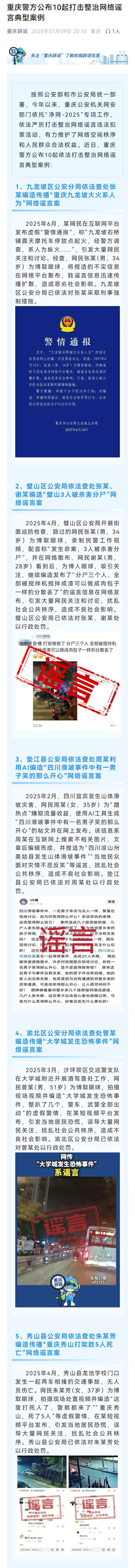 通报:重庆警方公布10起打击整治网络谣言典型案例