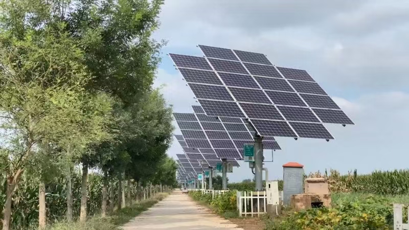 面对村集体增收难题,中国农业银行总行捐赠资金250万元,采用“跟踪式光伏+集体增收”方案,在邹村建成145.6千瓦时双轴跟踪式和312千瓦时单轴跟踪式两座光伏电站。