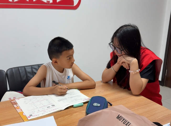 大学生志愿者们已经早早等在教室里,他们穿着统一的志愿者服装,脸上洋溢着青春的笑容。这些志愿者刚从校园里走来,太懂小学生写作业时的“小纠结”:有时是题目绕不过弯,有时是粗心大意,有时是贪玩分心。“作业有不会的吗?”“来,咱们一起看看这道题。”“你看,这样一算,答案就出来啦。”在志愿者的耐心陪伴下与慢慢讲解中,孩子们愉快地学习,没有了往日的焦虑和烦躁。“孩子在社区既能写作业,又能学到东西,我们上班也安心多了。”家长们的言语中流露出感谢之情。