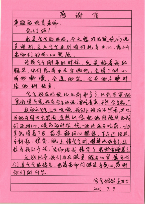 孩子的健康成长是家园合力共同教育的结果,家长们的口碑就是对我院托育中心的肯定!近期,衡水市中医医院托育中心收到了来自家长的感谢信及鲜花、锦旗等,包含着家长真挚的感恩与感谢,蕴含着对托育中心爱的礼赞。这份荣誉也是家长朋友对托育中心的褒奖与信任,让孩子们在充满爱的童年里健康、快乐、自信、阳光地成长。
