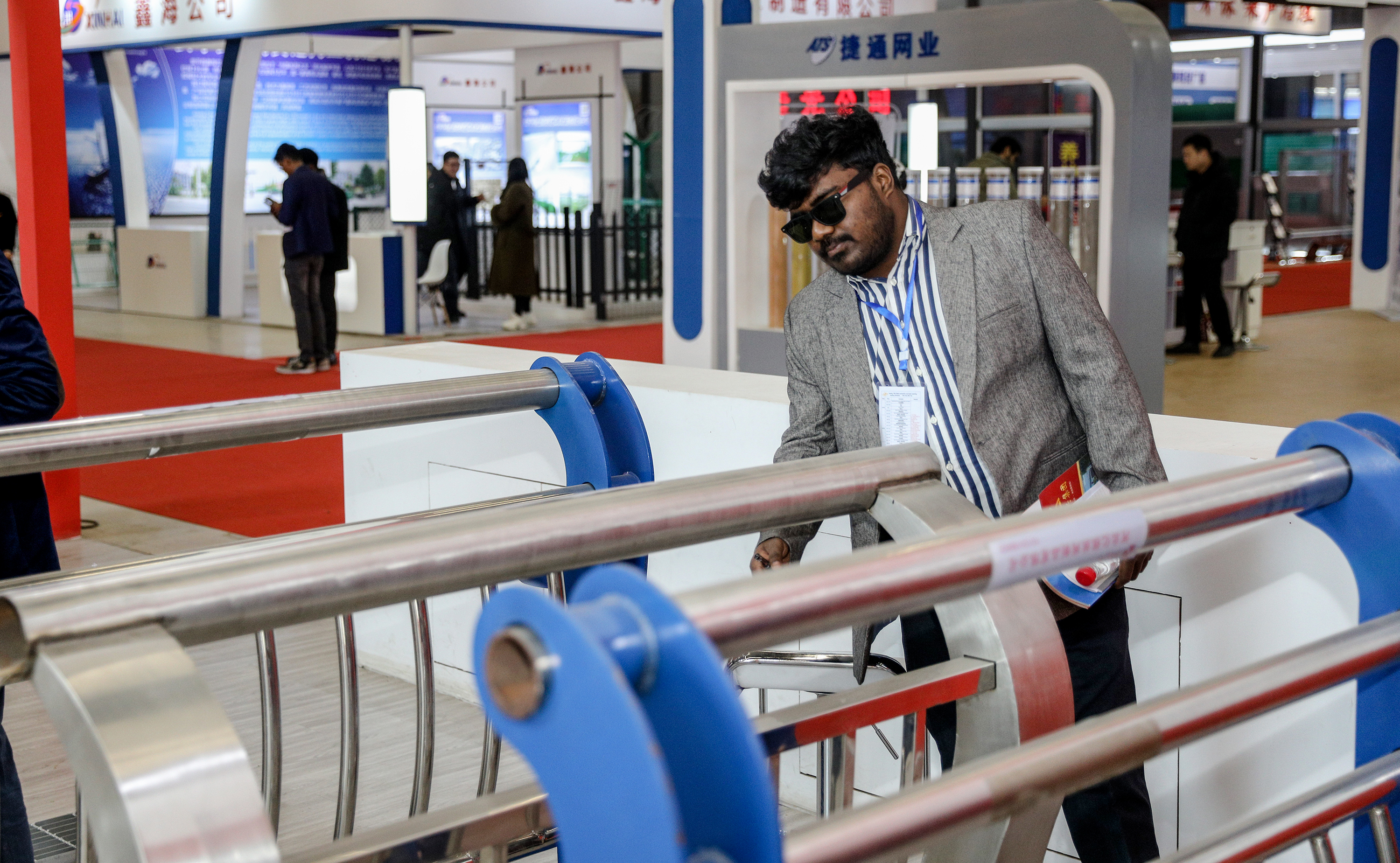 7月10日,2025雄安·衡水协作区安平丝网及农产品产贸对接会开幕式现场,参展商正在为客商介绍丝网产品。陈月振 摄