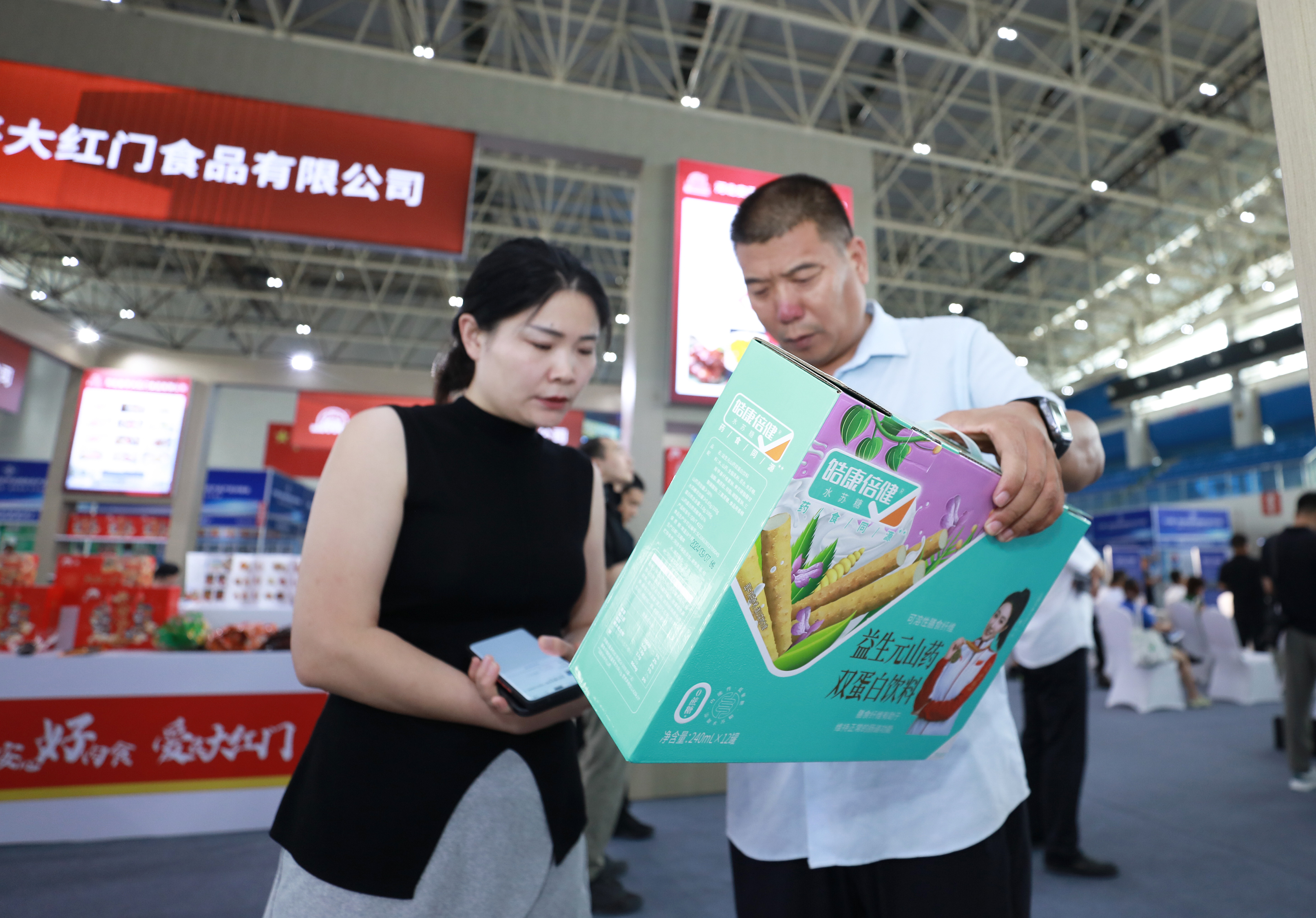 7月10日,客商参观现场展出的农产品。陈月振 摄