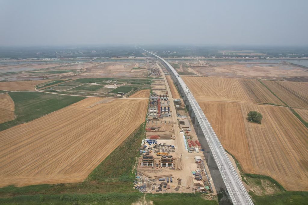 为确保汛期行洪安全,工程在经过赵北口溢洪道、赵王新河等关键区域时,同样采用桥梁上跨方案。其中,赵王新河特大桥4.48公里,赵北口溢洪道特大桥1.37公里。