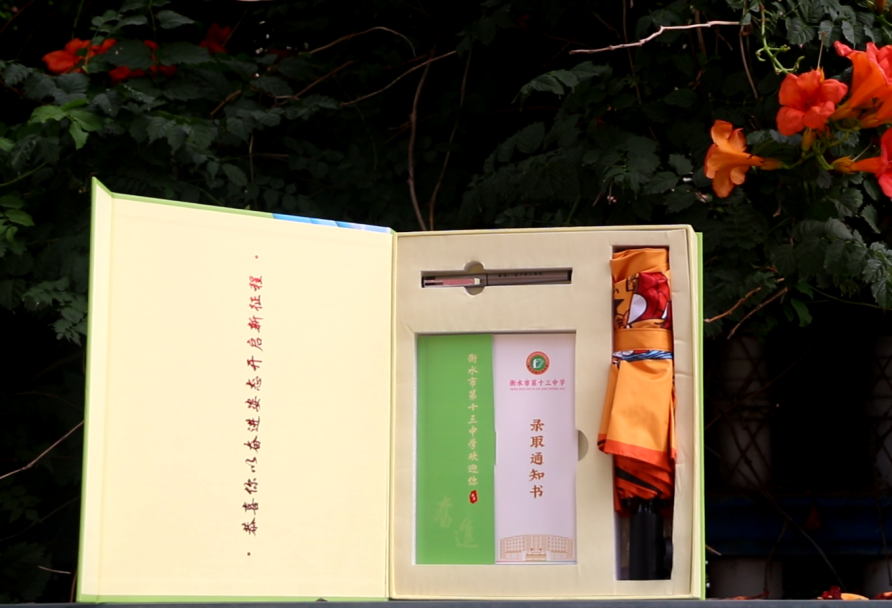 文创晴雨伞——清爽又热情的橙色,寓意大家走进“橙”功之门。以后的日子里,衡水十三中会为每一位学子遮风挡雨,保驾护航。