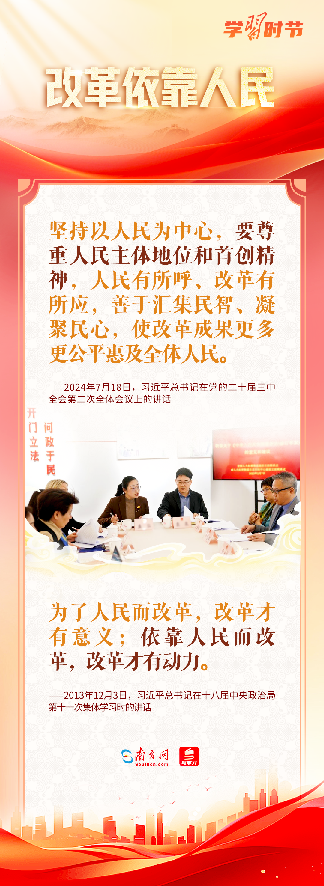 这是坚持以人民为中心的生动诠释。“没有人民支持和参与,任何改革都不可能取得成功。”进一步全面深化改革,必须紧紧依靠人民,才能凝聚起强大共识与力量,攻坚克难,行稳致远。