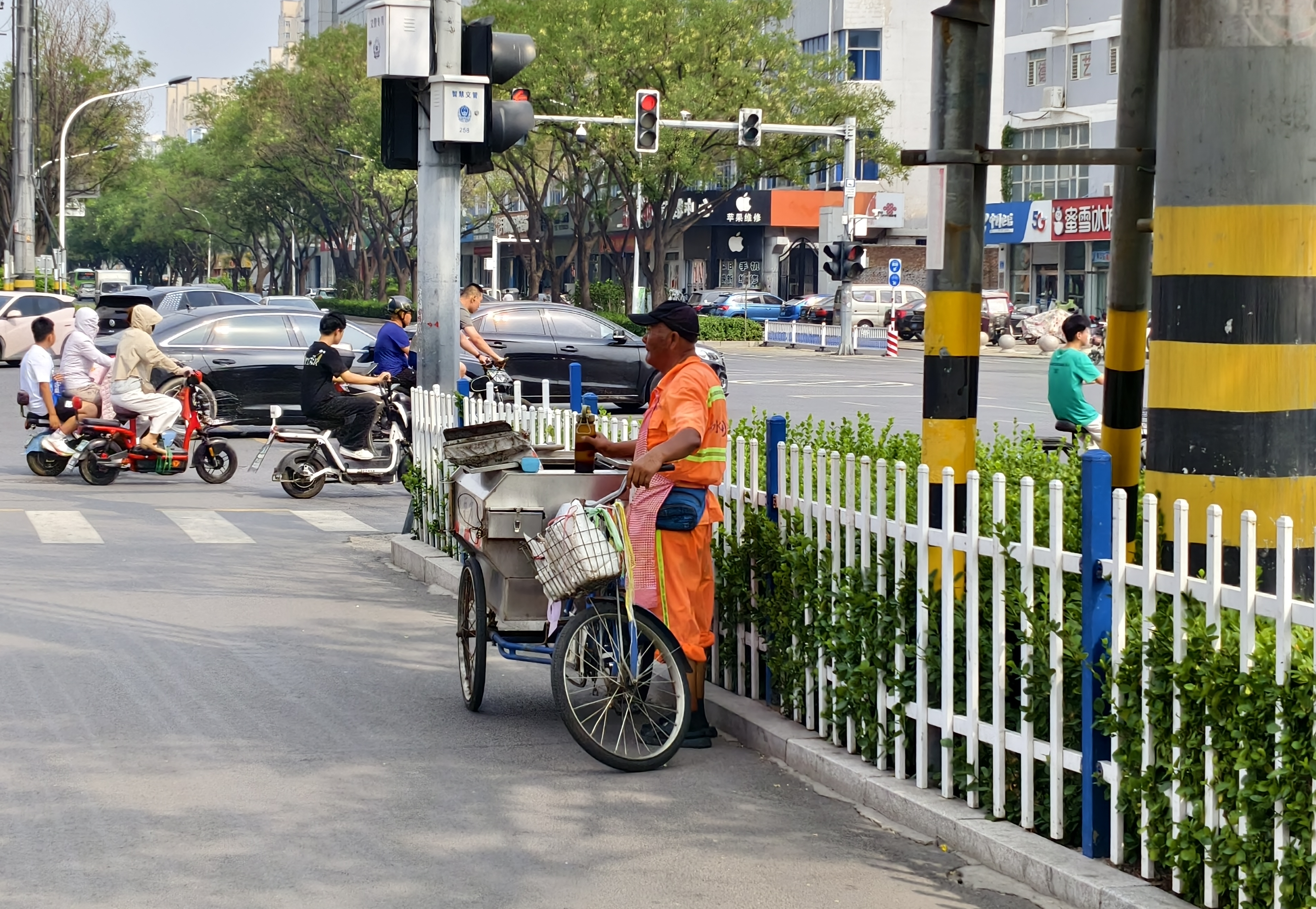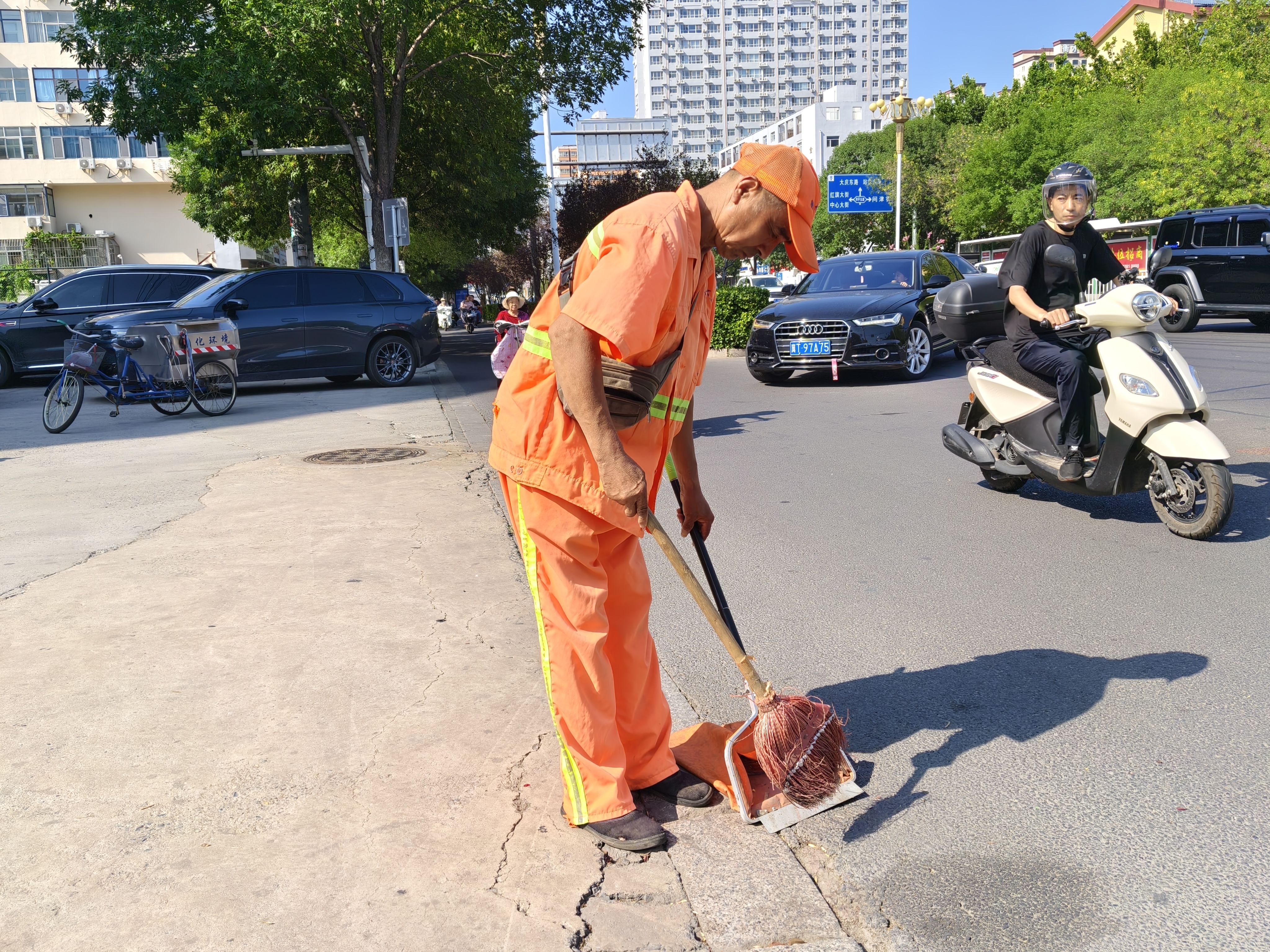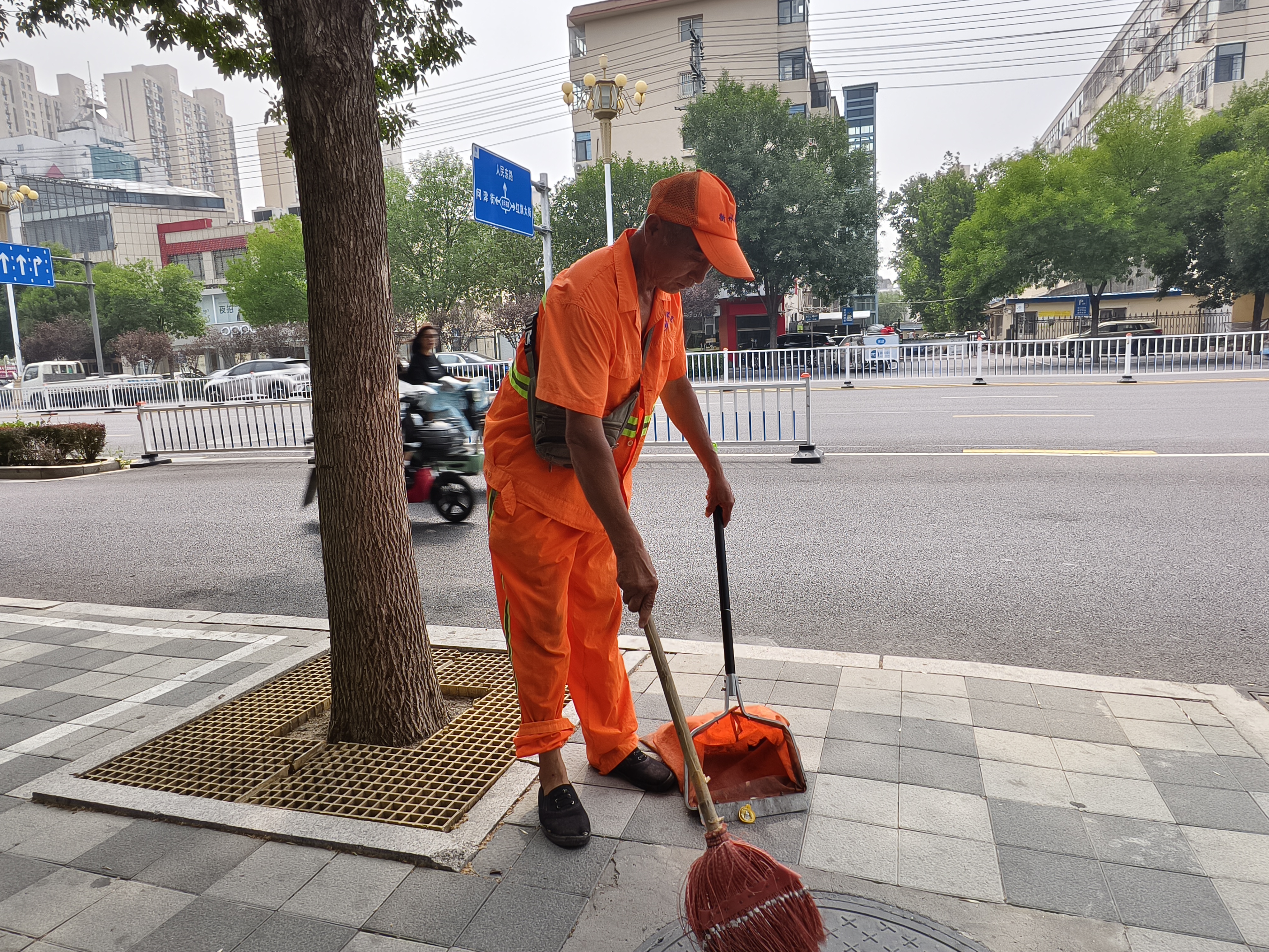衡水街头还有许多这样的环卫工人,他们身着“橘色战袍”,在烈日的无情炙烤下,用脚步丈量滚烫的街道,用汗水冲刷城市的尘埃。他们一次次弯腰、清扫,是与高温的对抗,更是对洁净的执着坚守。