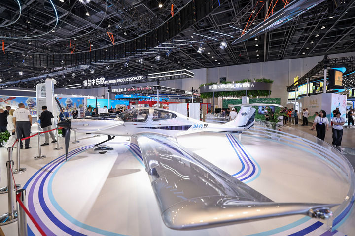 这是2025年5月22日在第四届中国-中东欧国家博览会暨国际消费品博览会“数智中东欧”展区拍摄的轻型飞机。5月22日至25日,第四届中国-中东欧国家博览会暨国际消费品博览会在浙江宁波举行。新华社记者 江汉 摄