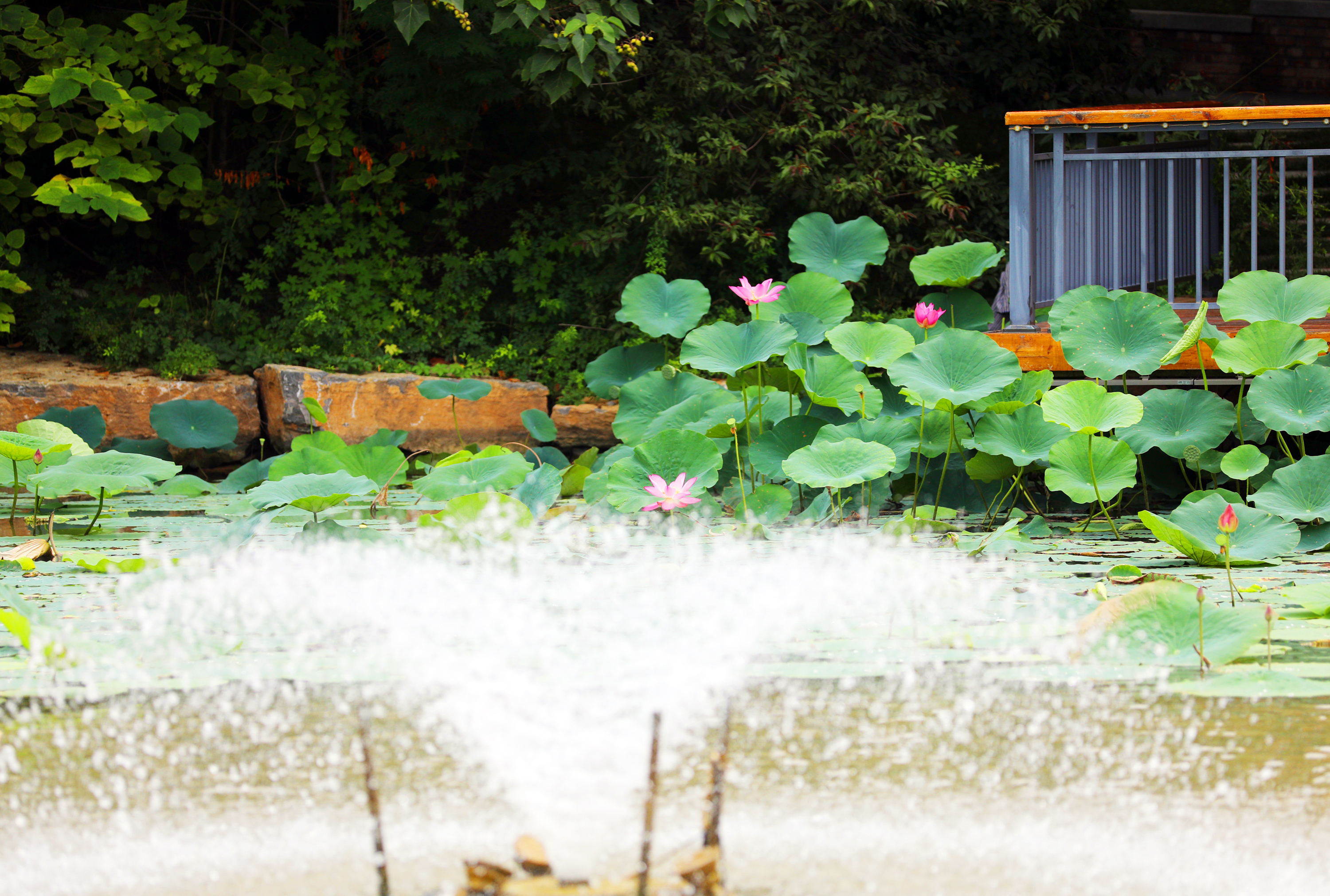 走进衡水迎宾馆爱莲湾,满池荷花即刻映入眼帘。碧叶如盖,层层铺展,粉白相间的荷花姿态万千,或全然绽放、露出嫩黄莲心,或半含半露、似羞怯少女。清甜的荷香在空气中浮动,为炎炎夏日带来丝丝清凉。