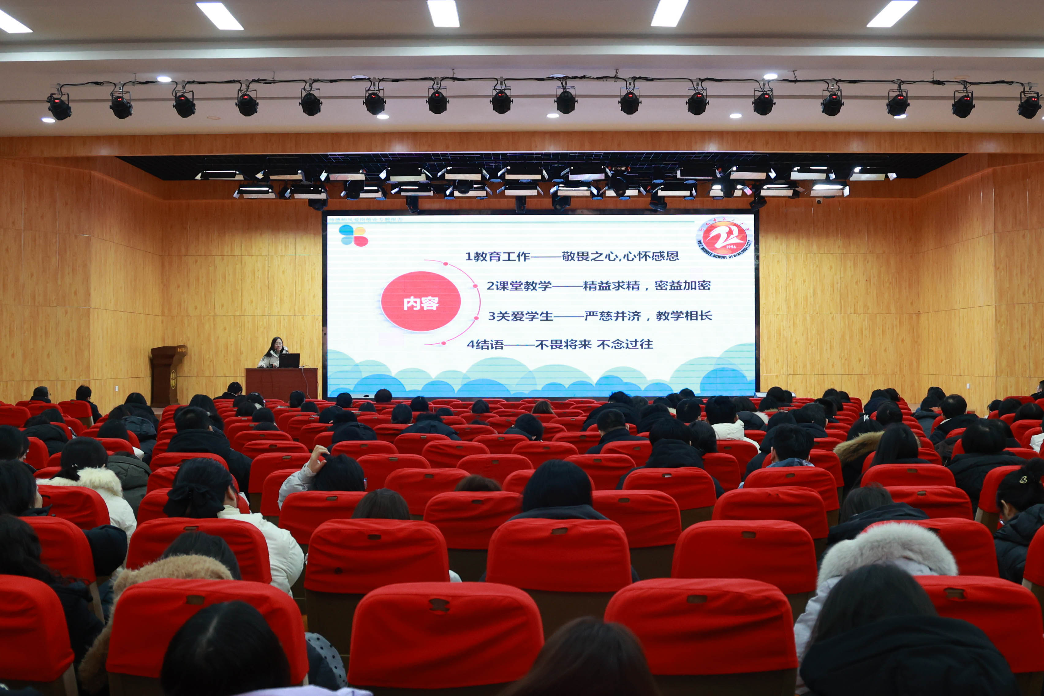 培训教师优团队。教师是文明“播种人”,学校强化师德师风建设,严格师德考核评价,实行师德失范“一票否决”,把师德师风作为评价教师的第一标准。定期开展优秀教师“师德师风报告会”、举办“十佳班主任”评选、教师年度表彰大会等活动,积极营造教师岗位上学先进、守初心、担使命的良好氛围;积极评选“儒雅教师”,大力弘扬“爱的教育”,将老师们在点滴中对学生的细心、耐心和爱心辐射向更广阔的范围;大力加强骨干教师队伍建设,发挥骨干教师的示范引领作用,着力打造文明教师团队。