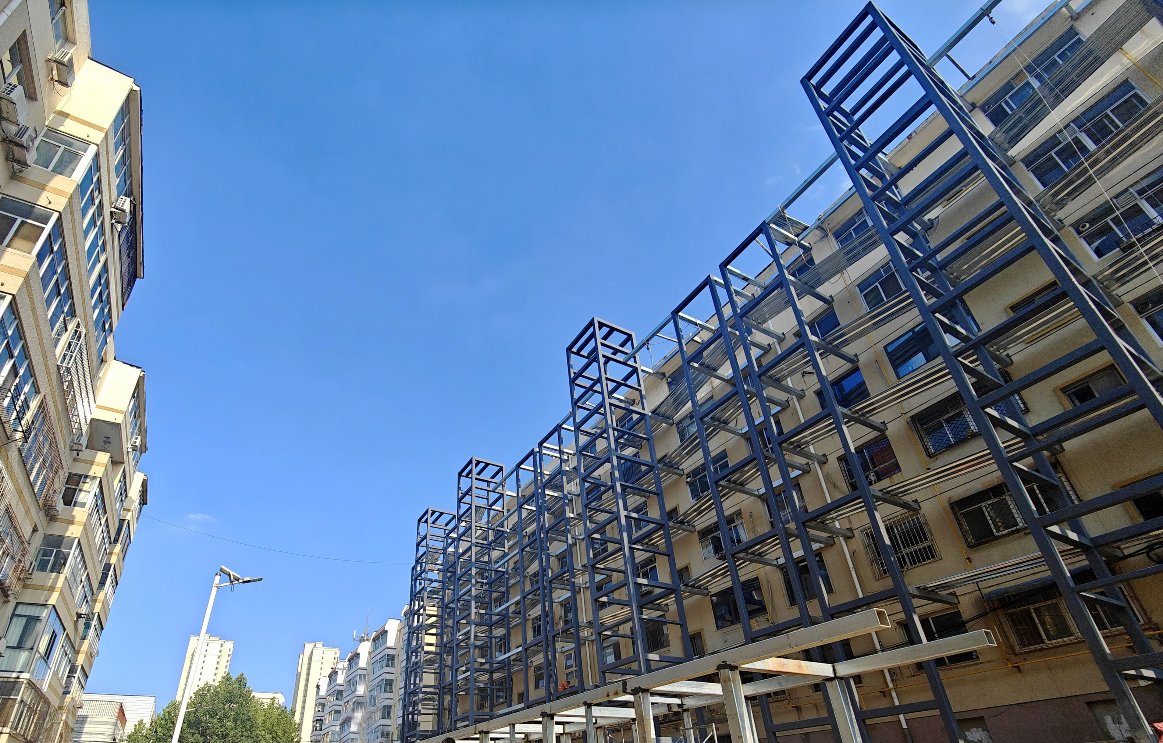 居民吕阿姨是8号楼安装电梯的牵头人,她虽住一楼,却是第一个提议装电梯的人:“我腿脚不好,爬一层楼都费劲,就盼着电梯装好,出门买个菜能利索点儿。”今年正月十五刚过,她带着想法敲开邻居们的门,你一言我一语唠了一个月,4月初施工队就进了场。目前,8号楼1—4单元同步施工,主体工程已完成三分之二,深灰色的电梯框架在阳光下闪着光。“我们这单元的电梯价格为59万多元,一楼住户掏2万多元,6楼住户掏6.9万多元。”吕阿姨说。