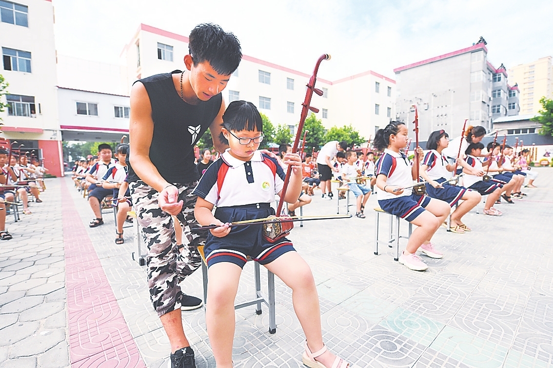 乘势而上,饶阳县进一步拓展产业边界,组建农民乐团,举办“乐动中国”饶阳(国际)民乐大赛、鼓王争霸赛等大型活动,构建起“赛事+作曲+演艺+培训+旅游+制造”的全产业链条,打造独具特色的“民乐+”发展新模式。此外,他们依托民乐产业优势,积极推进“民乐进校园”“民乐研学”等活动,加大师资投入,为学校配备民族乐器,让传统民乐在校园中生根发芽。