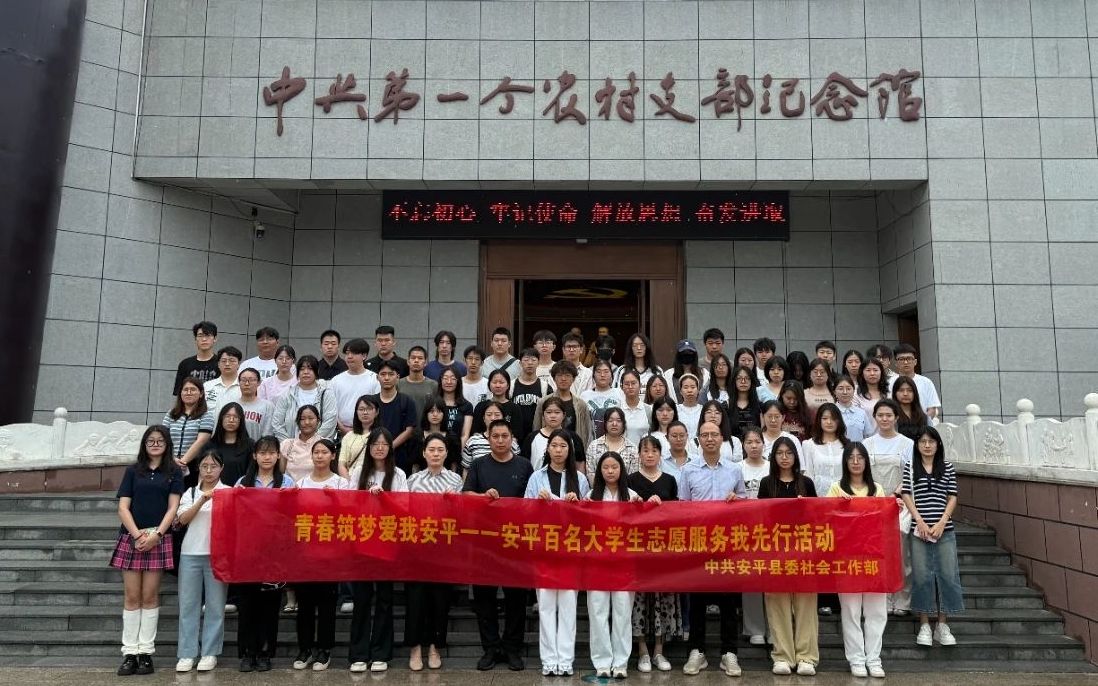 安平县在台城村党支部成立了百名大学生志愿服务团,通过参观中共第一个农村支部纪念馆, 服务团成员深入了解家乡的红色文化和历史底蕴,感悟先辈的革命精神,上好社会实践这堂“行走的思政课”。在此基础上,该县引领广大青年充分发挥专业所长, 在社区实践中凝聚青春共识,在服务基层中增强青春本领。