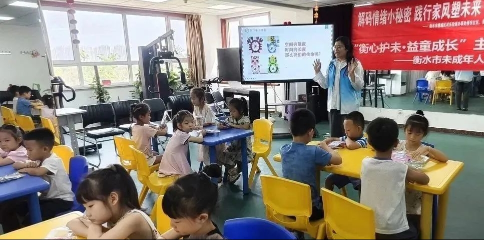 桃城区桥东社区在“解码情绪小秘密,践行家风塑未来”心理辅导活动中,大学生志愿者们和孩子们结伴进行“情绪接力赛”“匿名的情绪树洞”等游戏环节,引导孩子们走出烦恼,自洽而行。享园社区“乐享青春公益运动课堂”激发了孩子们对轮滑、跳绳等运动的浓厚兴趣,引导大家放下电子产品,在汗水中拥抱自信。