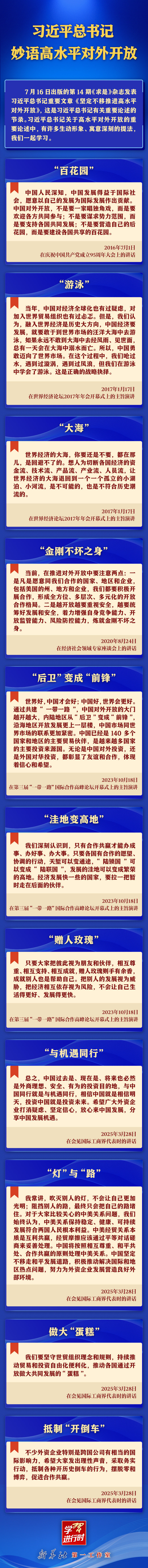 来源:新华社 原标题:学习进行时|习近平总书记妙语高水平对外开放 点赞 +1 微博 微信 我要评论 发布 相关推荐 学习笔记丨雄安新区建设,习近平这样领航指路、把脉定向 要闻 9小时前 联播+ | 这则寓言,习近平多次讲起 要闻 13小时前 “坚持依法治国和依规治党有机统一”——习近平法治思想指引党员干部守规奉法履职尽责 时政 13小时前 【讲习所·中国与世界】习近平以“四个伙伴”为中加关系发展把脉定向 要闻 1天前 独家视频丨习近平:希望各位大使多走走多看看 全面认识中国 要闻 1天前 习近平接受外国新任驻华大使递交国书 要闻 2天前 习近平接受外国新任驻华大使递交国书 要闻 2天前 习近平会见加拿大总理卡尼 时政 2天前 此行间·习近平的“治权”之喻,发人深省 时政 3天前 热门 一天 三天 一周 1 寒假学生票怎么买?衡水车务段发布购票指南 2 张家口以“绣花功夫”织密人民城市幸福网 3 联播+|“翻烧饼”“旋转门”……直击顽疾的反腐妙喻 4 武邑县康泰社区:“排查+宣传”织密消防安全“防护网” 5 时习之丨人民城市为人民 6 冀时评丨石沪高铁,跑出“生活新时速” 7 “卷”出新高度!河北五超第二十三轮:这哪是比赛,分明是“文体大餐” 8 联播+ | 这则寓言,习近平多次讲起 9 河北省委农村工作会议召开 10 康保冰雪嘉年华 | 《快来康保吹吹风》MV发布 1 衡水气温大跳水 周末还有小雪现身 2 “小讲堂”传递“大能量” 3 1月26日铁路实行新运行图 衡水车务段新增6列旅客列车 4 新《治安管理处罚法》实施 衡水七中师生同上法治“必修课”筑牢青春防护网 5 衡水市故城县检察院“小桔灯”未检团队全力护航未成年人健康成长 6 千锤锻古刃 匠心铸锋芒——探访深州冷兵器制作非遗传承人王二兵 7 壹视界·从“早节”到“晚节”,总书记叮嘱党员干部拒腐防变 8 衡水市2026年“送项目、送资金、送政策、送和谐”文化科技卫生“三下乡”集中示范服务活动 9 衡水以岭药业总经理范文成荣获市政府质量奖 10 衡水桃城区:寒冬暖“新”护巾帼 1 抢抓生机 以岭德衡医院中西医结合为78岁脑梗老人筑牢生命防线 2 衡水气温大跳水 周末还有小雪现身 3 电视专题片《一步不停歇 半步不退让》第一集《纠风治乱为民》 4 衡水冬日不“冷” 商场餐桌冰雪场 处处涌动消费热潮 5 金融观察|人保寿险陷入合规危机:6369万非法集资案背后 一年140起诉讼案与400万罚单 6 以“换”激活力 用“新”增动能——2025年衡水市消费品以旧换新工作综述 7 衡水市新增57名市级非遗代表性传承人 8 生态赋能绿色转型 衡水市武强县成功入选2025年“绿水青山就是金山银山”实践创新基地 9 1500场服务点亮文明之城 衡水青年志愿者吹响“集结号” 10 衡水:“冀益携手”为困境患儿送资助金 广告 广告 广告 24小时 1 值班总编说报|韧者笃行 奋楫新程 2 “河北五超”衡水赛区第二十三轮完赛 3 海报系列||早安衡水 4 看图学习·冰雪春天丨“把发展冰雪经济作为新增长点” 5 学习笔记丨雄安新区建设,习近平这样领航指路、把脉定向 6 河北省委农村工作会议召开 7 “卷”出新高度!河北五超第二十三轮:这哪是比赛,分明是“文体大餐” 8 奋进的河北“十四五”答卷丨共享为钥 智造为翼 河北特色产业集群焕新发展 9 冀时评丨石沪高铁,跑出“生活新时速” 10 2025“家国事” | 盐碱地上拾“金”记
