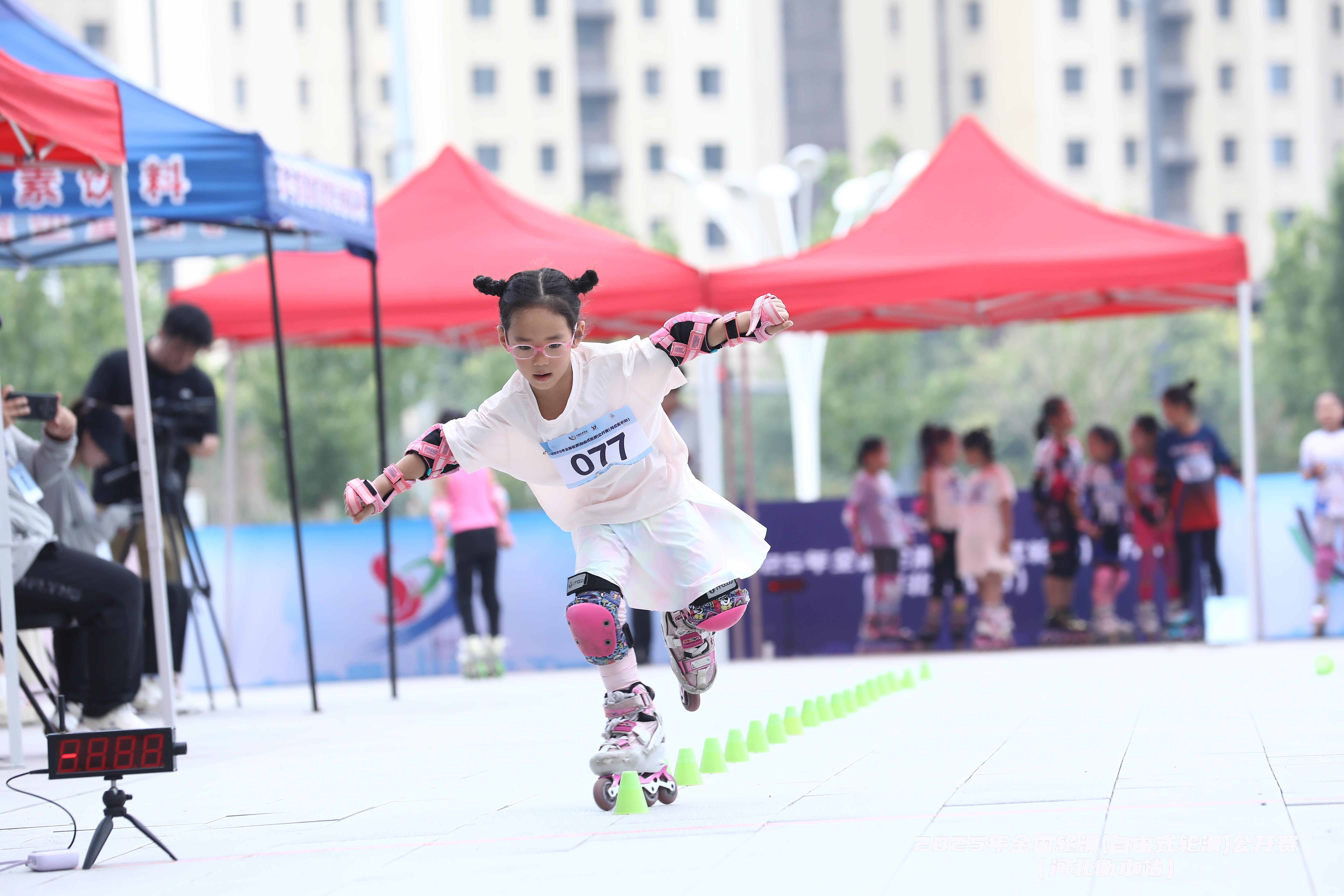 公开赛为期两天,共吸引了北京、上海、天津、河北、辽宁、浙江等省市的28支代表队的近200名轮滑健儿参赛。赛事设速度过桩、花式绕桩、轮舞、花式刹停距离赛、平地跳高等6个项目,涵盖成年组、青年组、少年组和儿童组等多个年龄组别,既满足不同年龄阶段选手的参赛需求,也为广大轮滑爱好者搭建了交流、展示与切磋的平台。