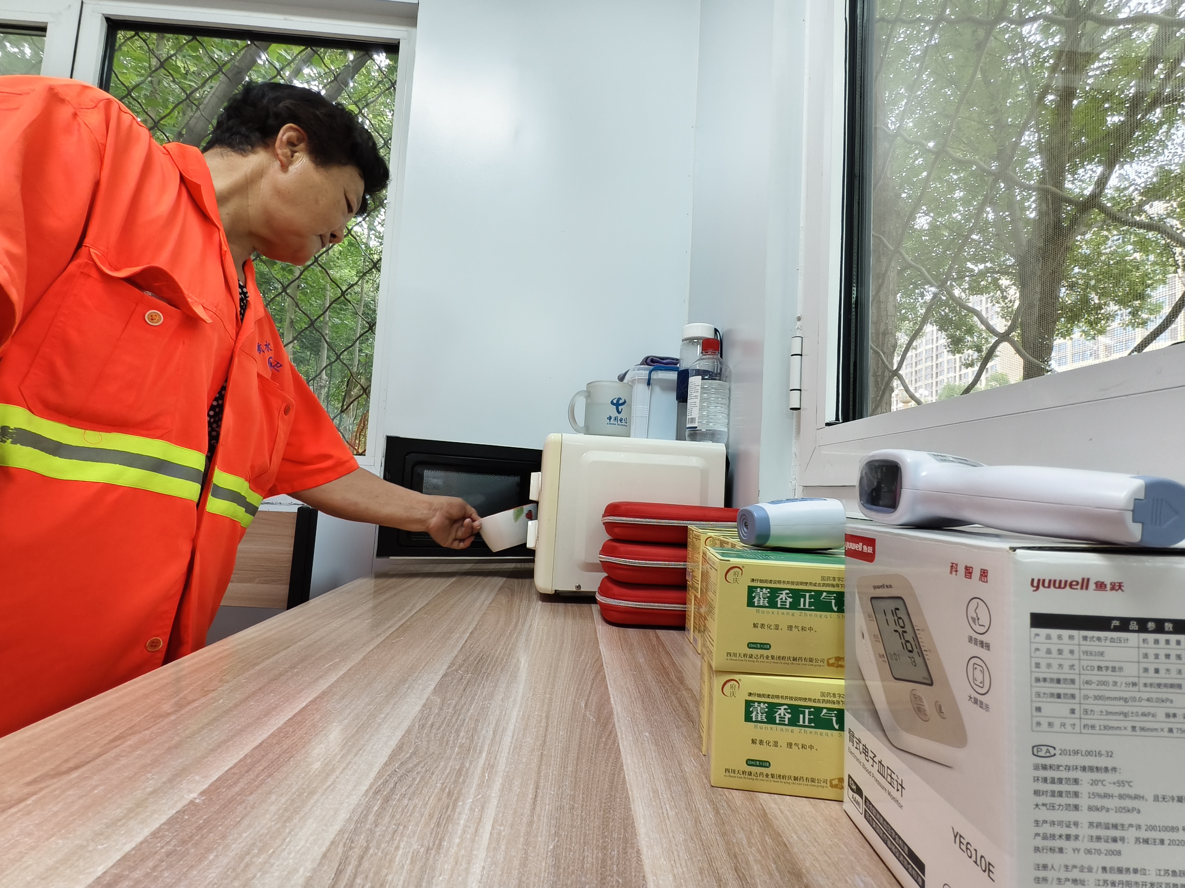 环卫工人休息室内各种防暑降温药品一应俱全。杨雯 摄