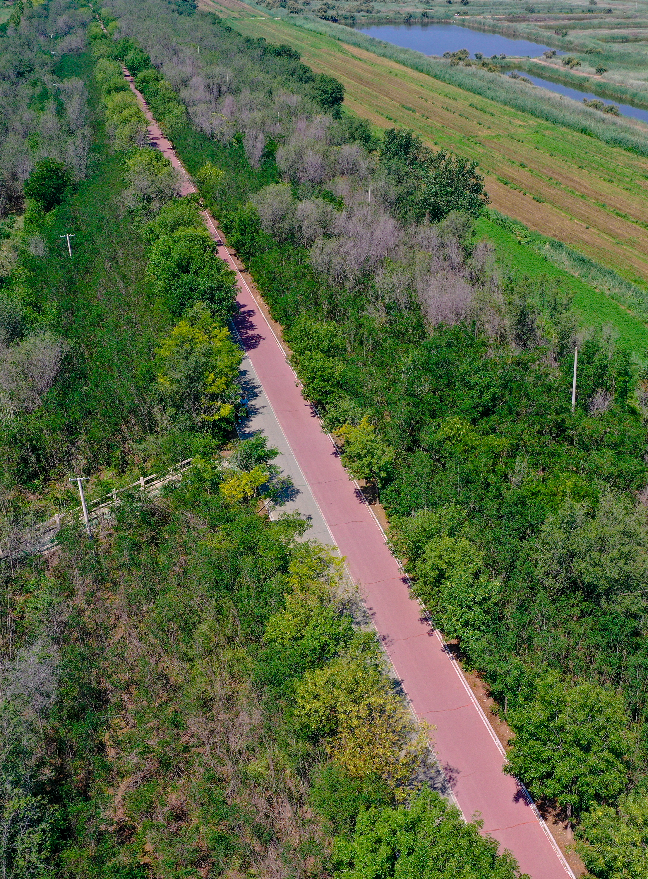 沿线繁茂的枝叶交织成天然绿色长廊,清晨与傍晚,人们在清新空气中舒展筋骨,既能锻炼身体,又可卸下疲惫、放松身心。