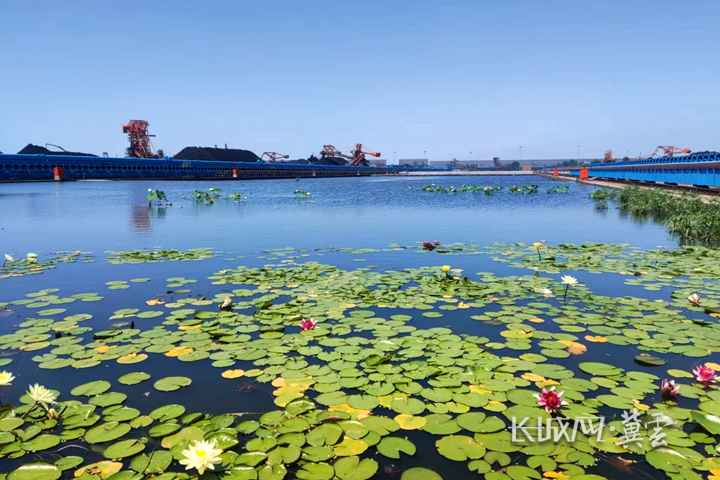 碧波轻漾的池塘中,一只白鹭掠过水面,荷花在风中摇曳生姿。眼前的美景让人很难想象,这片16万平方米的生态水域曾是秦皇岛港昔日的矿石堆场。如今,含煤污水经三级沉淀池逐级净化,化作滋养荷花的清流。