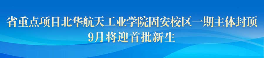 近日,省重点项目北华航天工业学院固安校区一期项目主体结构全面封顶,正式转入工程收尾阶段。