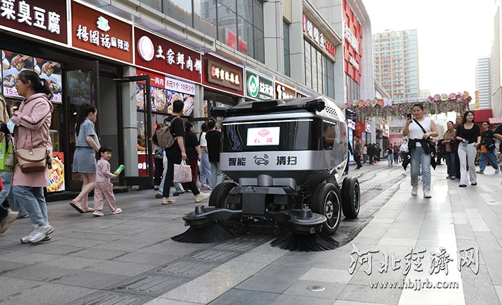 AI环卫机器人在石家庄湾里庙步行街亮相。河北经济日报记者 刘朋朋 摄