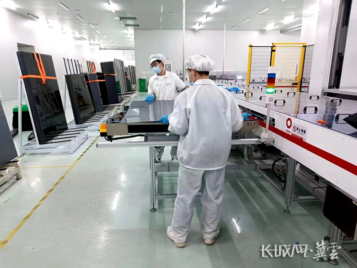 工作人员正在对碲化镉薄膜发电玻璃进行质检。长城网·冀云客户端记者 张隽 摄