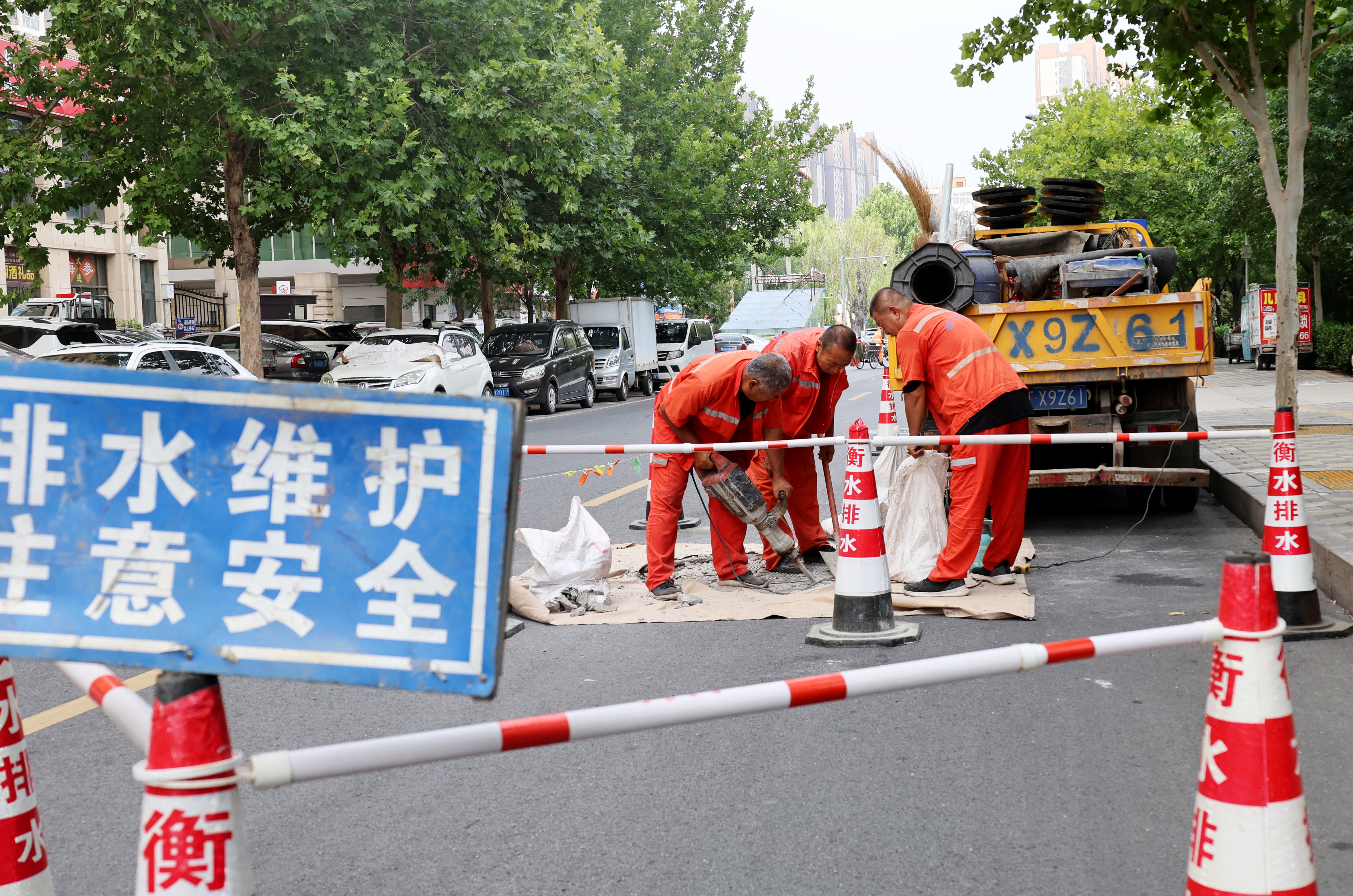 作为衡水市城管局排水管理中心维护科应急组的井盖维修工,乔书长已在这个岗位上干了9年。他和同事们负责市区雨污水井盖的应急处置,但凡出现异响、破损等安全隐患,他们就到场抢修。“昨晚接到通知,这个井盖过往车辆一压就颤,有安全隐患,得赶紧修。”他的声音被电镐的轰鸣声淹没,微微侧头时,额头上的汗珠顺着沟壑纵横的脸颊往下淌。此刻,橘黄色的工装后背早已被汗水浸透,紧贴在脊背上,裸露的手臂上布满细密的汗珠。