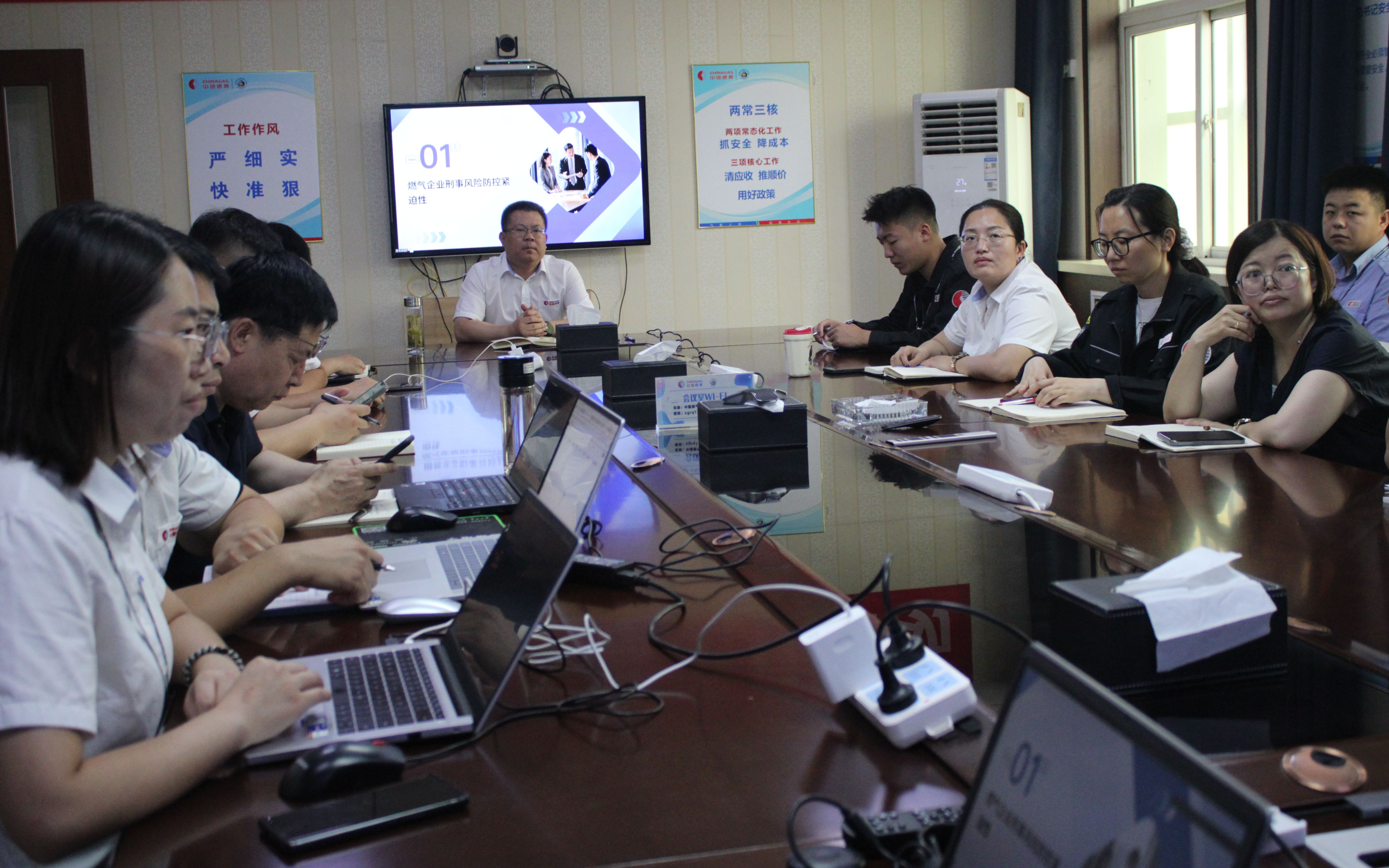 为全面提升企业依法合规经营水平,强化全员法律风险防范意识与底线思维,近日,中国燃气衡水经营管理集团特邀河北中衡诚信律师事务所马国锋律师,为全体管理人员及关键岗位员工进行了一场主题鲜明、内容深刻的《筑牢底线思维—燃气企业刑事风险防控与警示教育》专题法律培训。马国锋律师以其深厚的专业功底和丰富的实务经验,为参训人员带来了一场极具针对性的法治教育课。