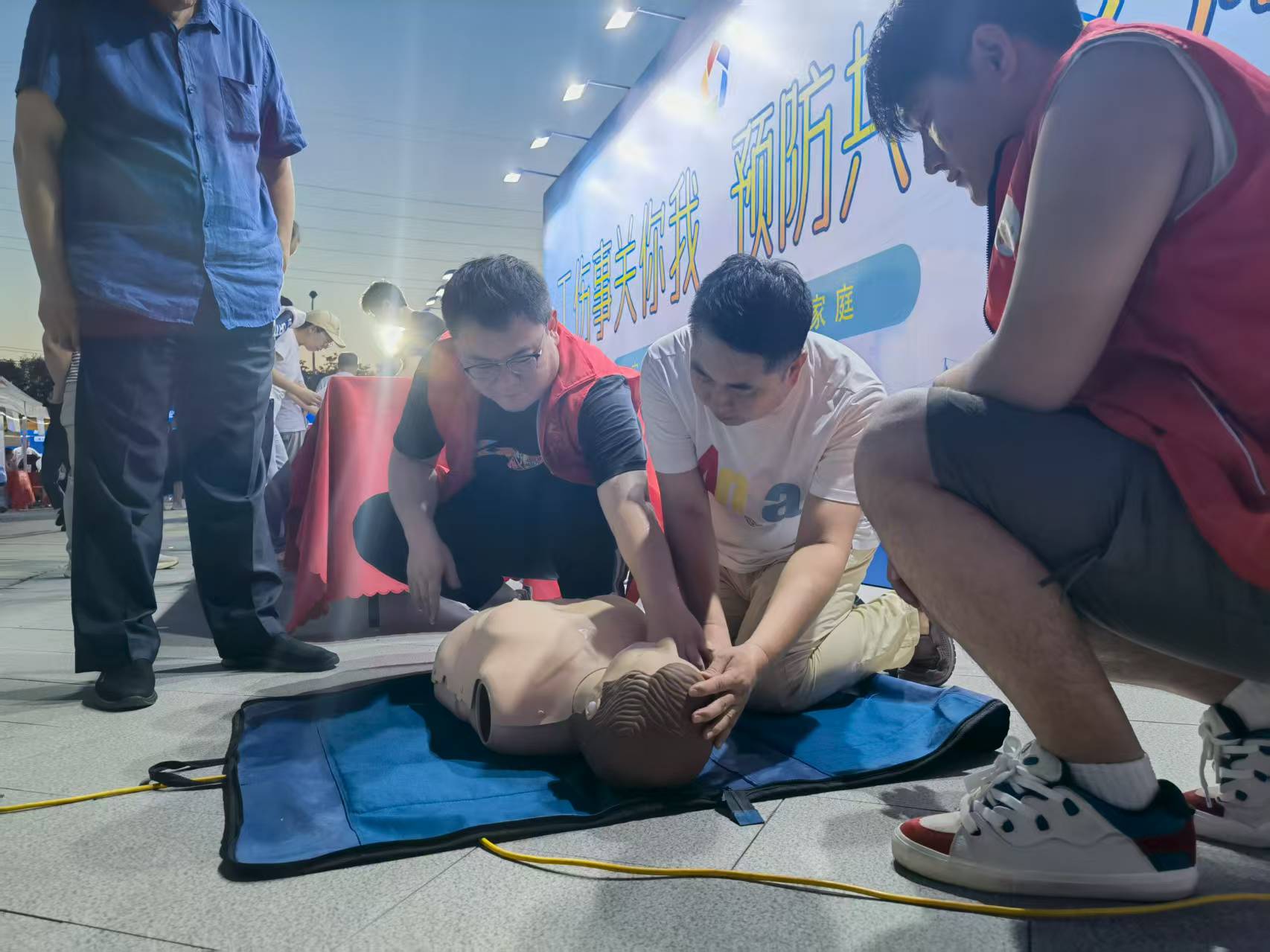 活动现场设立政策咨询台,人社局业务骨干针对建筑、物流等工伤高发行业,重点解读工伤保险参保流程、待遇申领等热点问题。活动共接待咨询120余人次,发放宣传资料200余份。衡水市人民医院男护士急救宣传小分队的队员也来到现场,向市民讲解演示心肺复苏基本要领,让人人学急救。