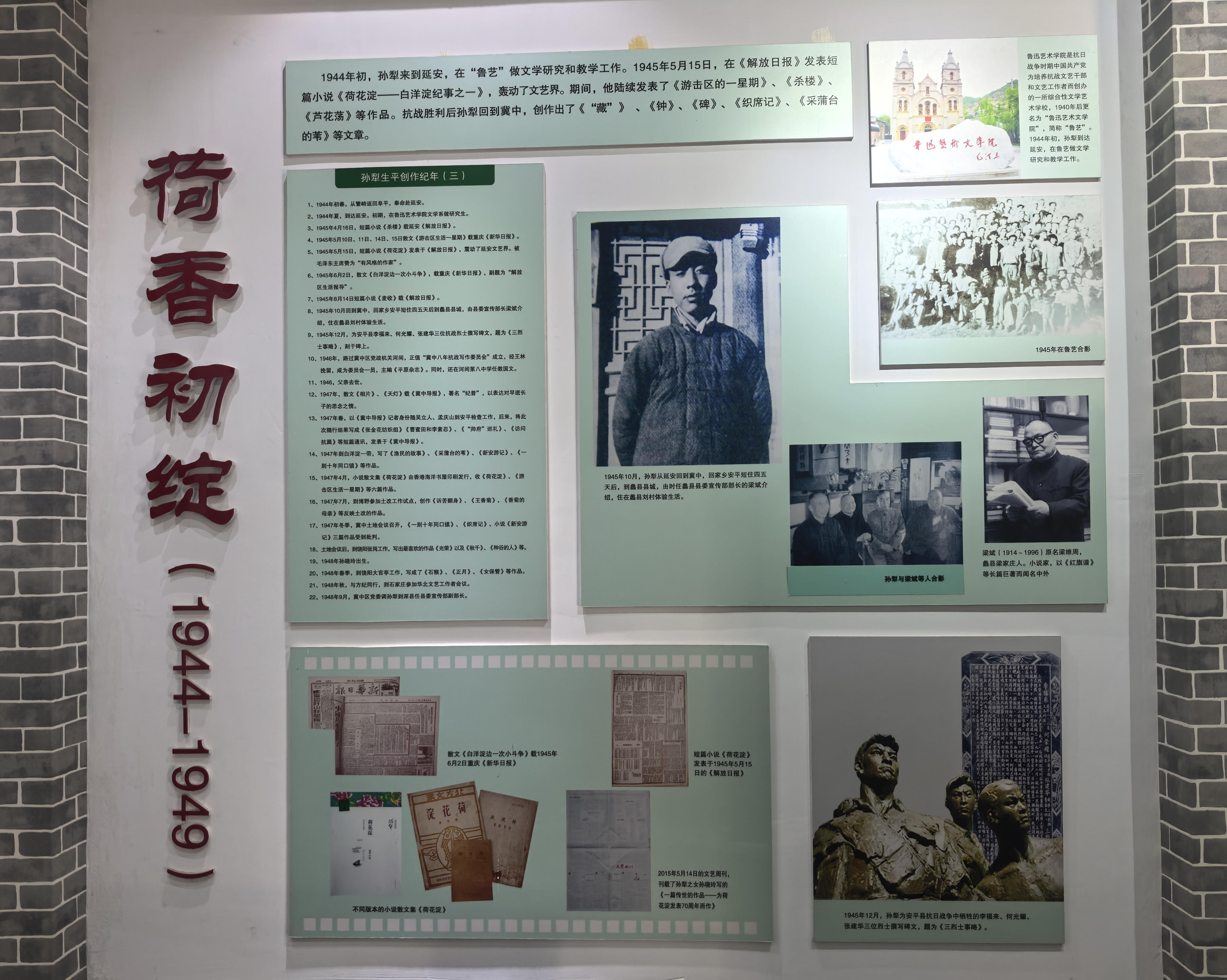 踏入内院,堂屋对联“荆树有花兄弟乐,砚田无税子孙耕”墨迹犹新,相传为孙犁父亲手笔,蕴含着对兄弟和睦、子孙勤学的期许与传统文化的底蕴。西间卧房的土炕上,粗布被褥仍保留着旧时模样。仰首可见顶棚糊满泛黄的《大公报》——青年孙犁正是从这些报纸触摸外界风云。