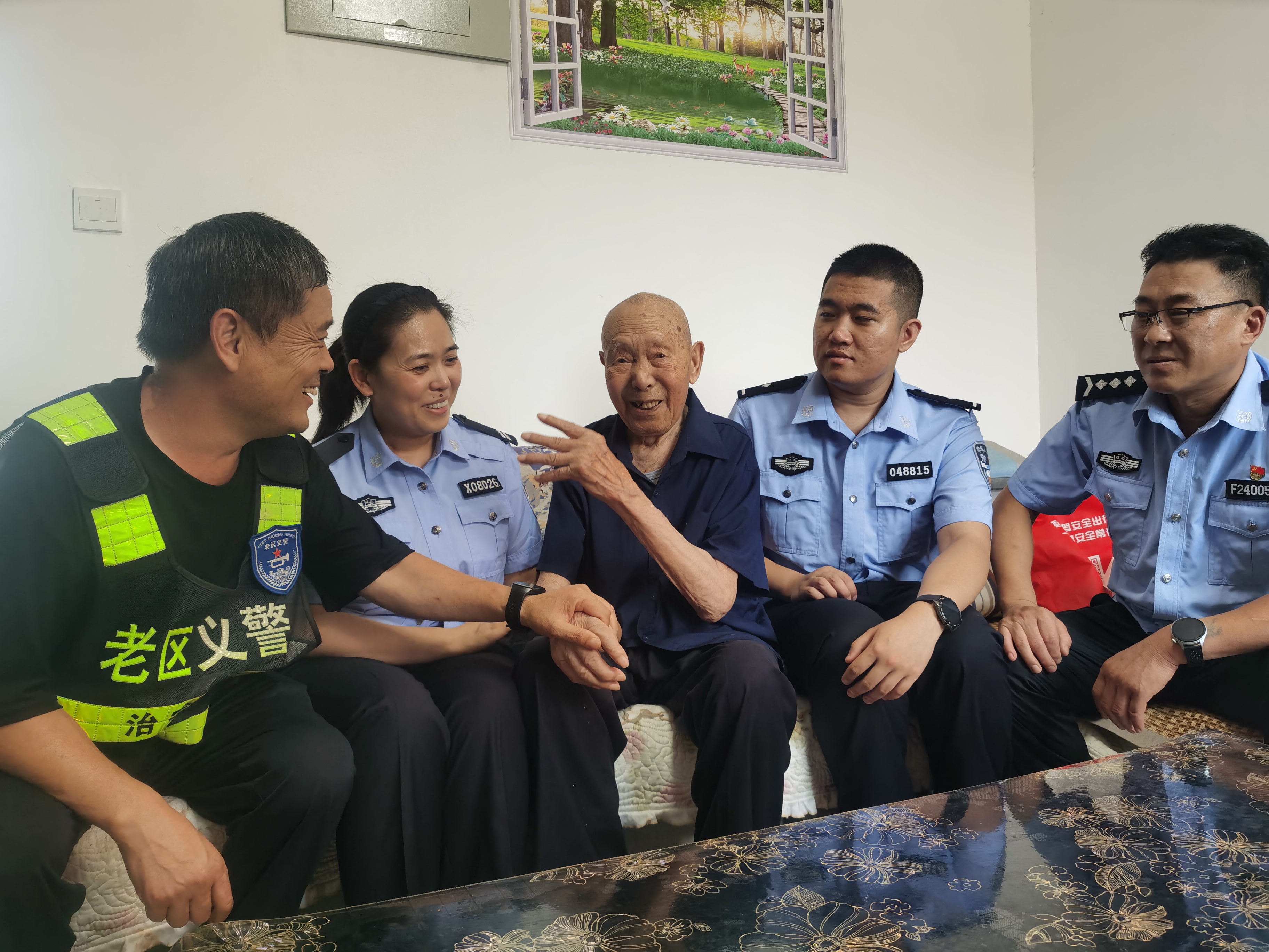 图为民辅警和义警走访刘生科老人。