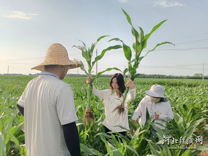 河北省玉米产业技术体系邢台试验站站长李艳(中)现场指导农户玉米管理事项。河北经济日报记者 贾宏博 摄