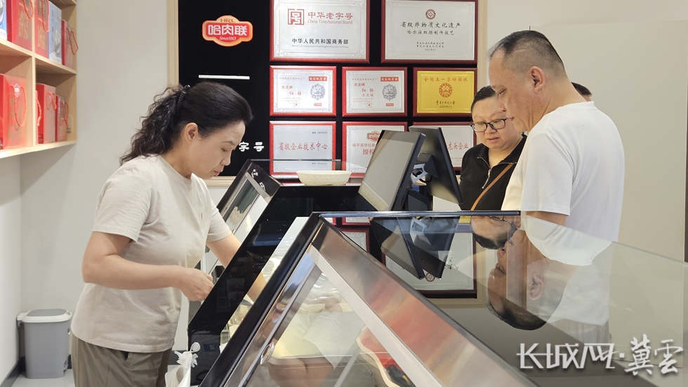 蒋先生在哈肉联店铺里购买红肠。长城网·冀云客户端记者 牛笑 摄