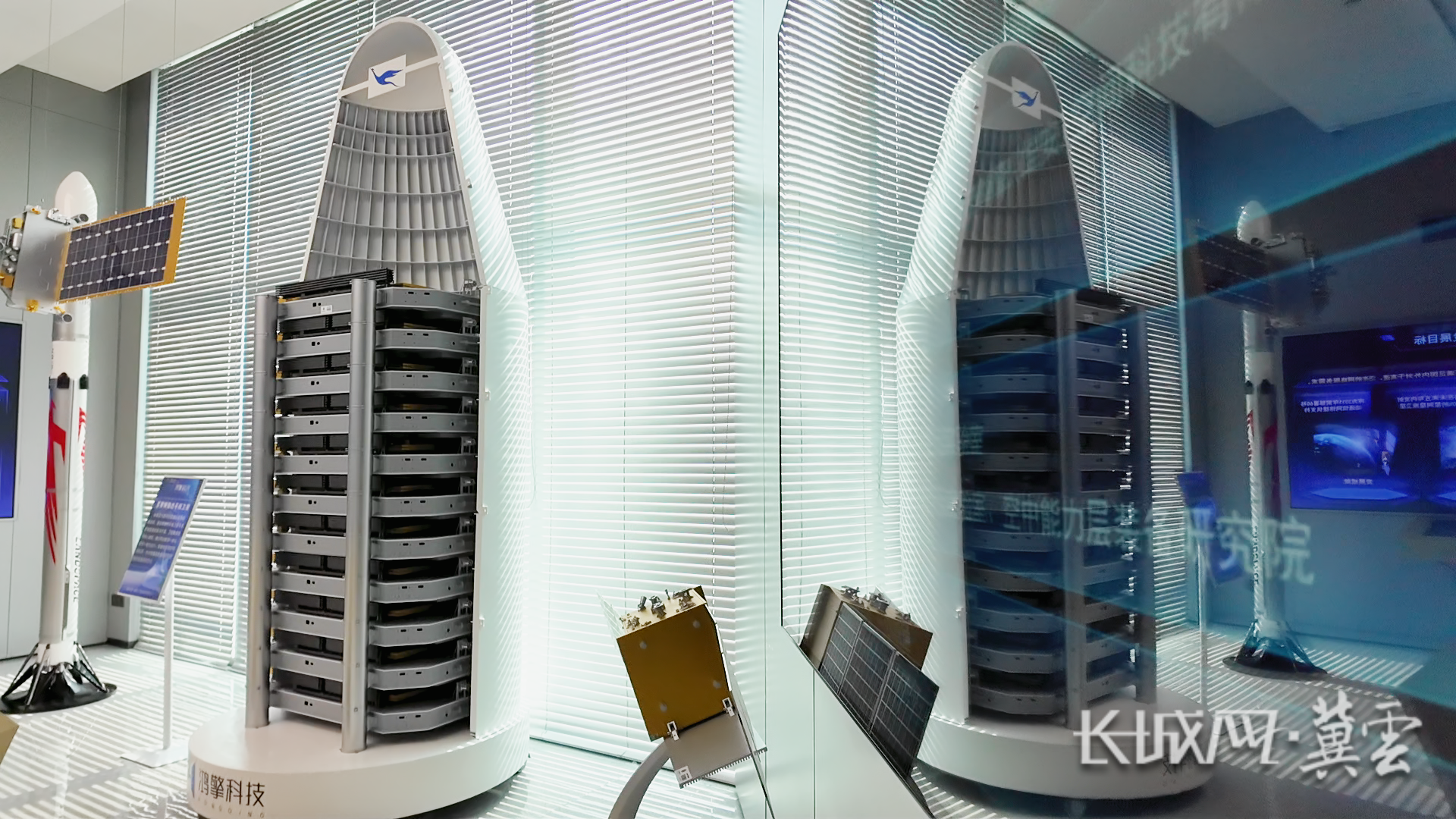 鸿擎科技展厅内的可堆叠平板互联网通信卫星。长城网·冀云客户端记者 路钦淋 马宁摄