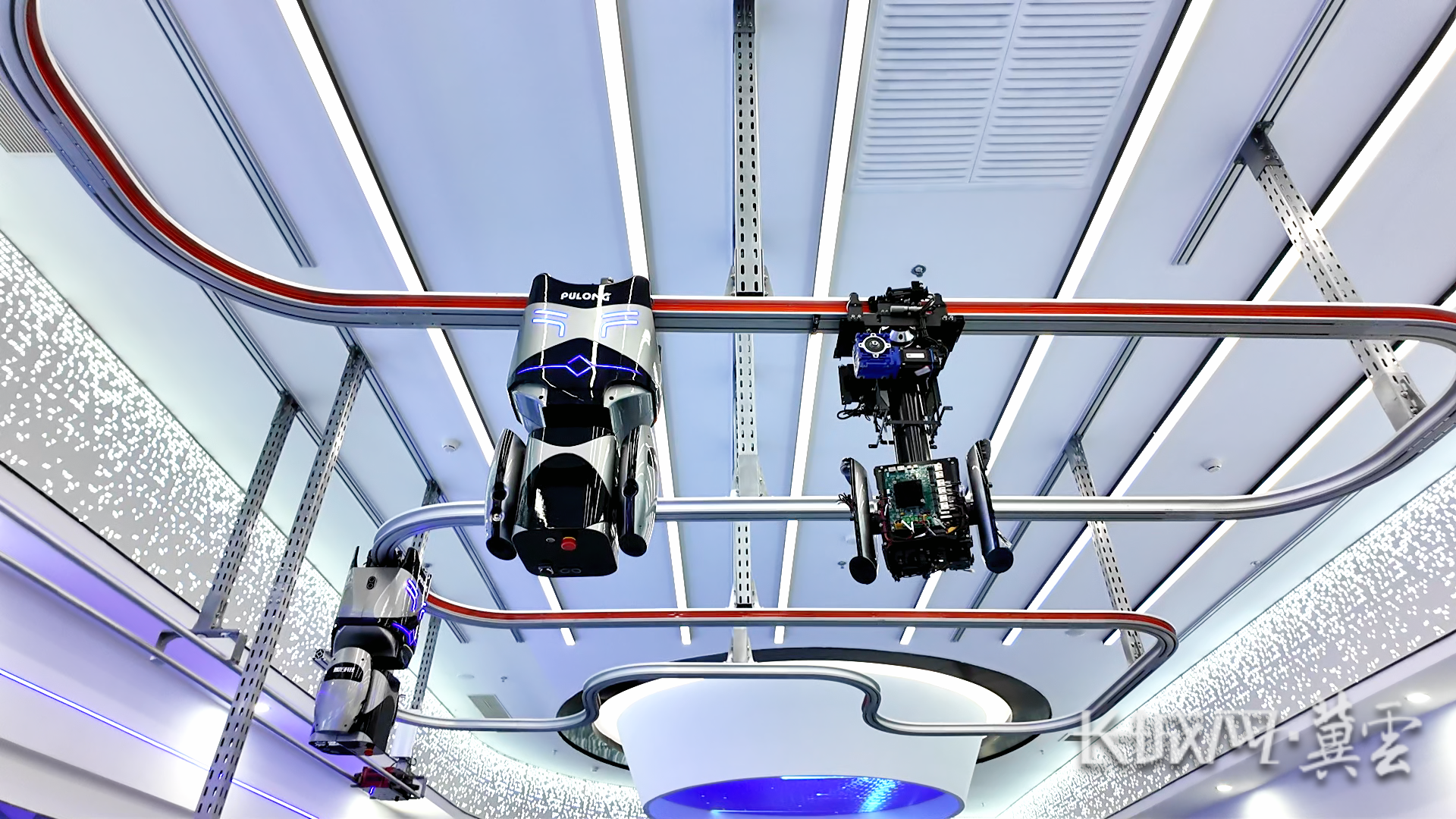普龙科技展厅内的挂轨式AI巡检机器人。长城网·冀云客户端记者 路钦淋 马宁摄