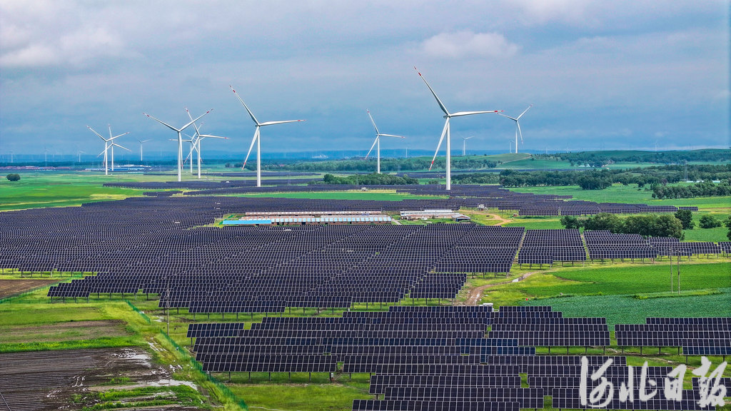 7月7日,无人机航拍的位于张北县的风电和光电设施。 河北日报记者 耿辉摄