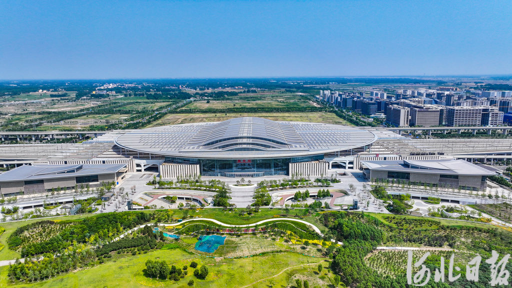 雄安站是雄安新区首个开工建设的重大基础设施项目,是连接京津冀三地人流、物流和信息流的重要节点。图为6月15日航拍的雄安站。河北日报记者 耿辉摄